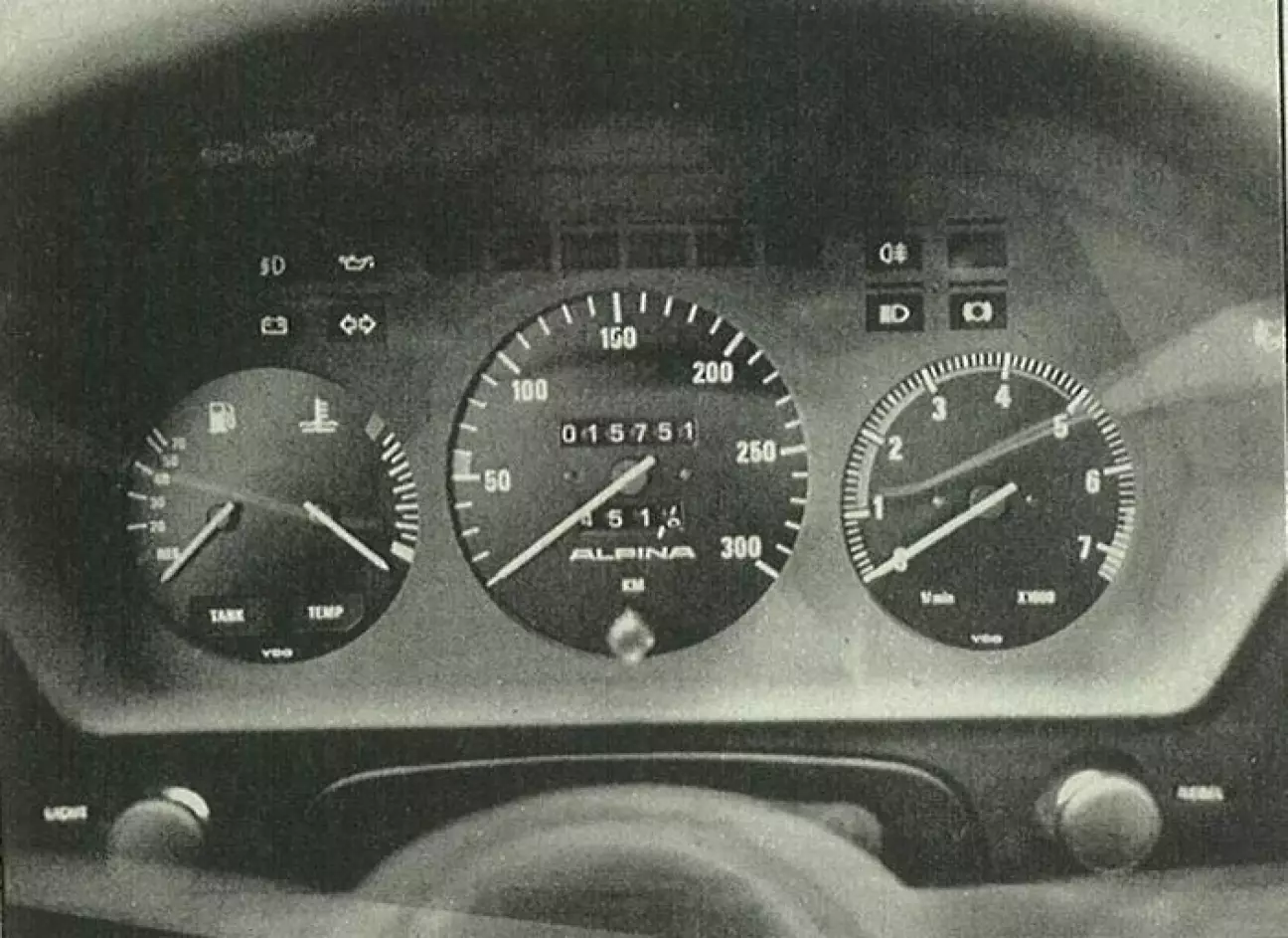 Что касается оснащения купе B9, то оно соответствует BMW 635 CSi и дополнительно включает спортивные сиденья Recaro с хорошим профилем (по желанию в дизайне с полосами), подставку для отдыха левой ноги и тахометр Alpina, размеченный — в данном случае излишне — до 300 км/ч.