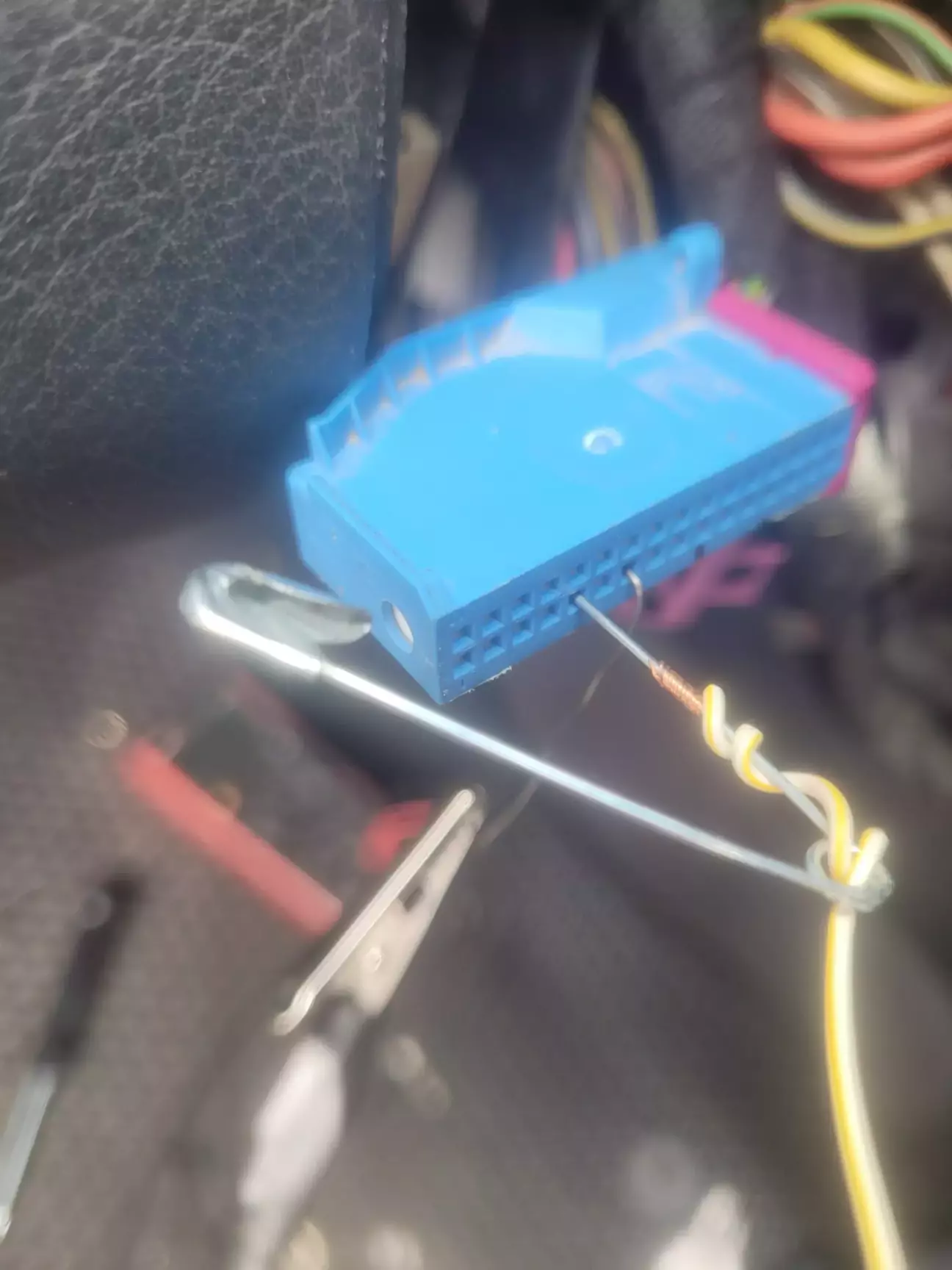 T10f/3 - роз'єм коричневого кольору - в ногах водія, за пластиком, що біля ручки відкриванню капоту
