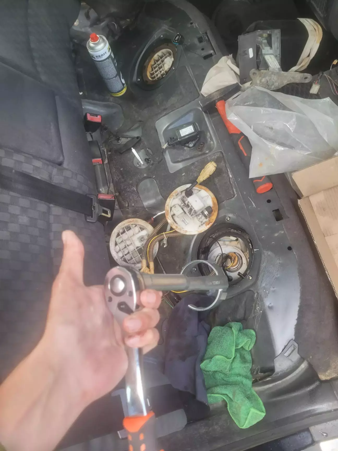 Для доступу до нього у кваттро Аванта потрібно викрутити вуха для кріплення багажу, ті що ближче до задніх сидінь. І витягти підлогу в бік ляди.