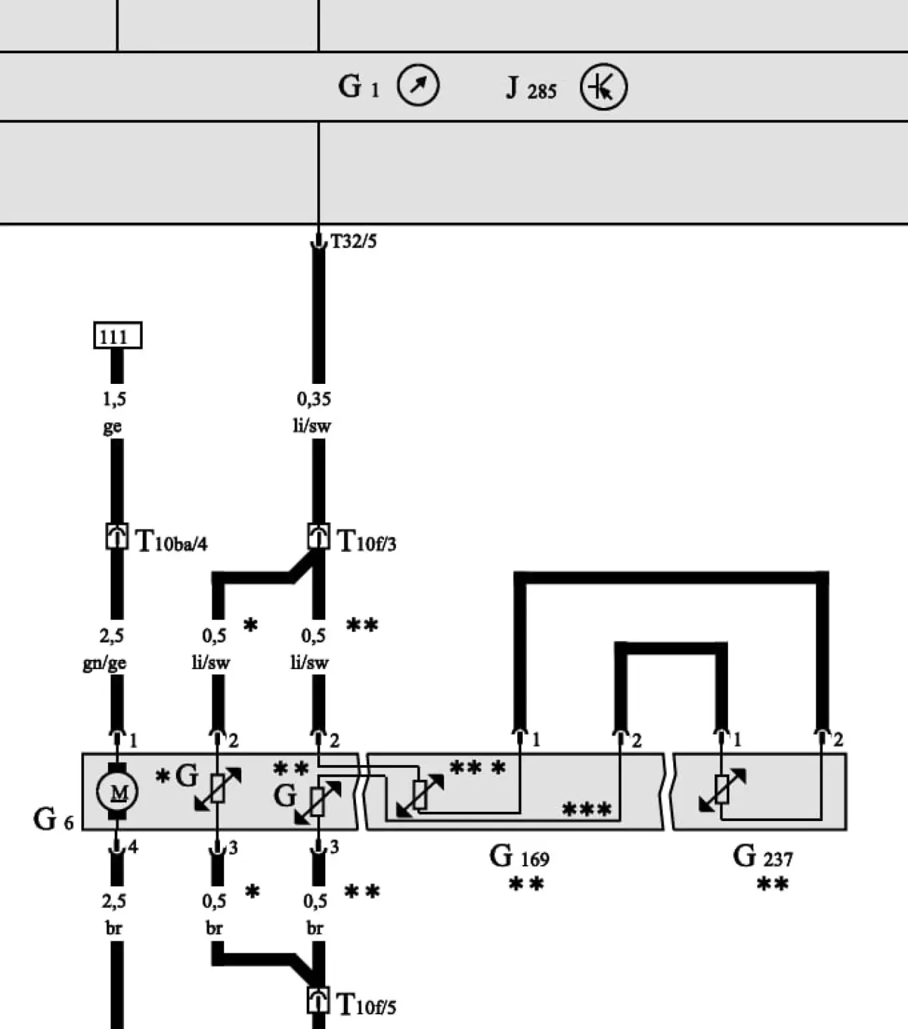 G3 - повний 110...112 Ом, пустий - 19...20 Ом. На електричній схемі це G237.