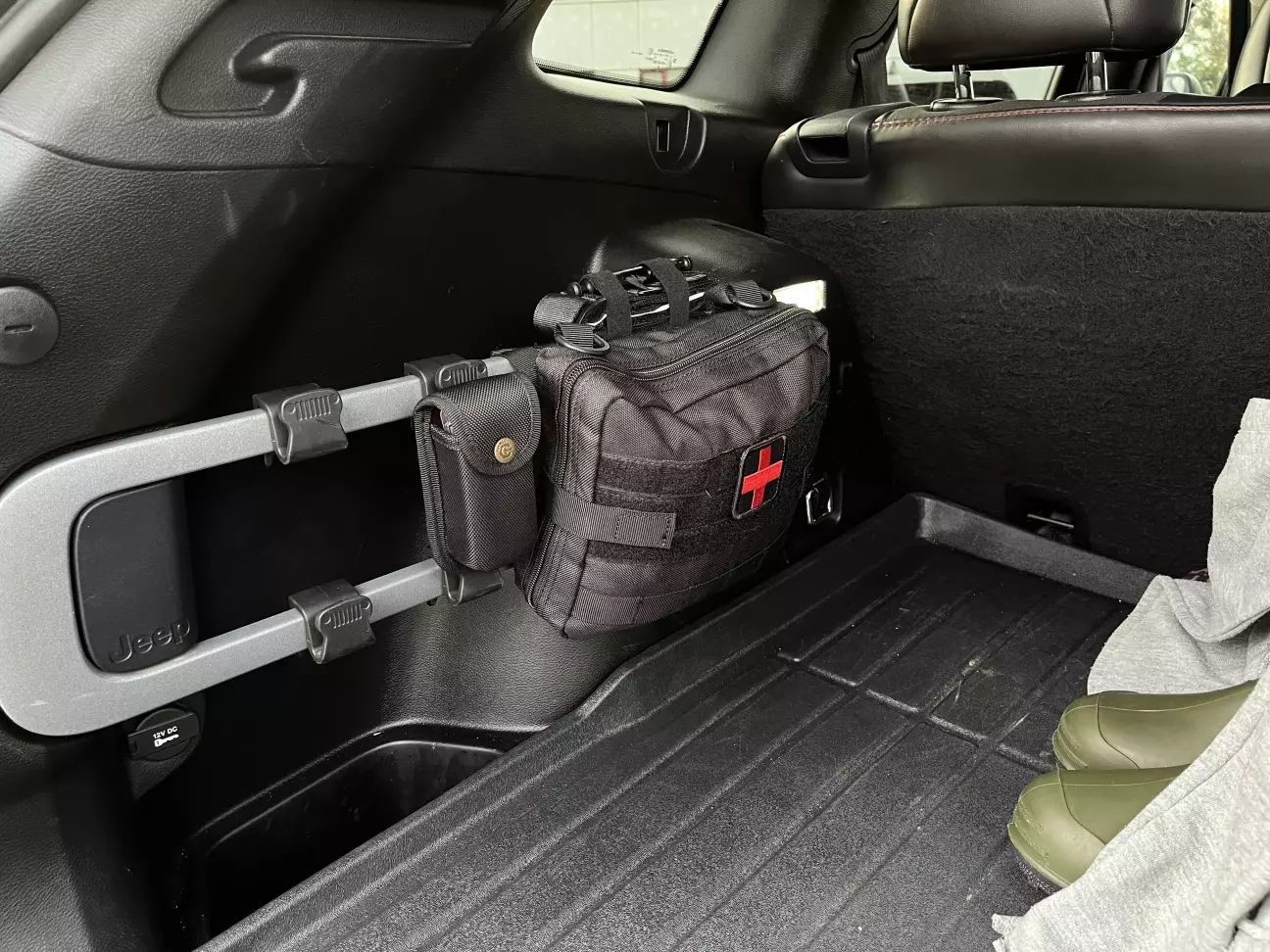 Турнікет закріпив зверху на липучках для швидкого доступу. Загалом, як на мене- вийшло непогано. Маю надію, дружині тепер не доведеться битись на ножах з циганами за таблетки.