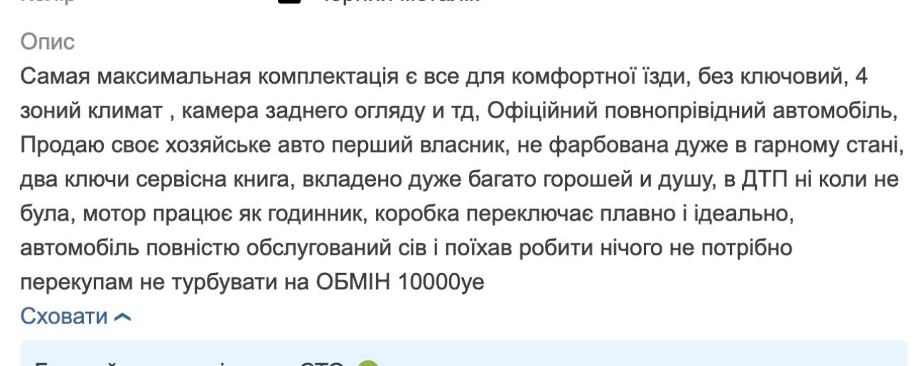 Зрозуміло, що авто відповідає ціні, але нашому клієнту було озвучено, що питань нема, машина дуже гарна, все, як в оголошенні.