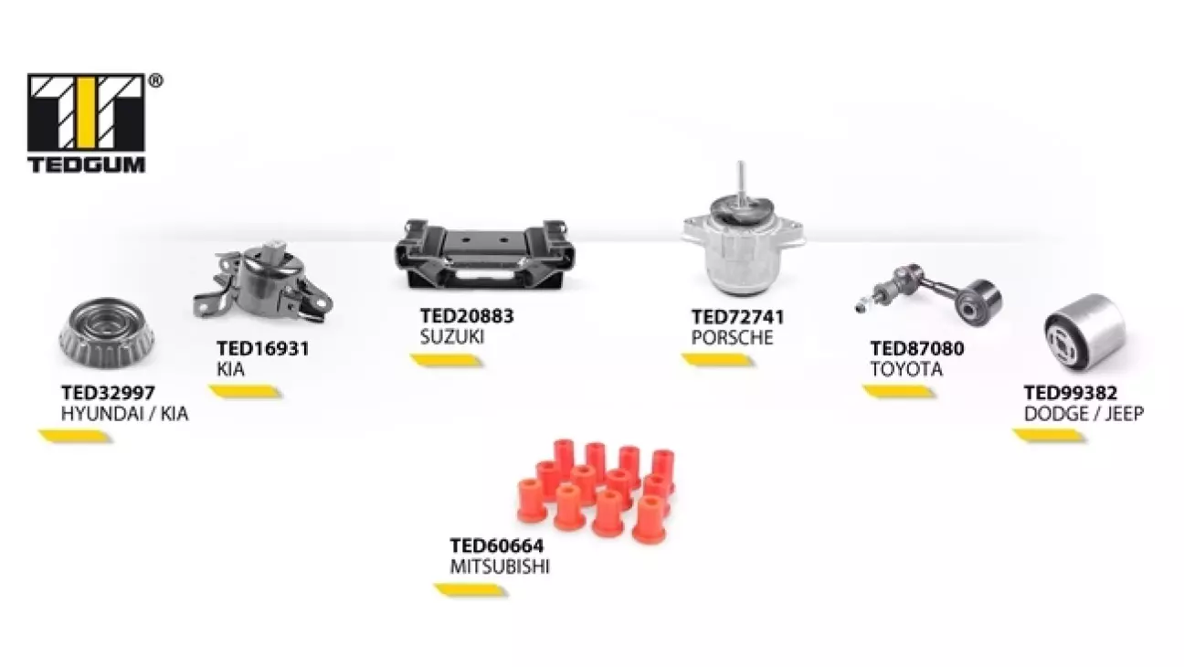 Відзначимо, що запчастини TEDGUM доступні в наявності та під замовлення в АвтоНова-Д. Асортимент останнього надходження деталей польського бренду нараховує 398 найменувань. Крім втулок та сайлентблоків, до нього увійшли опори двигуна та КПП, підвісні підшипники та ін.
