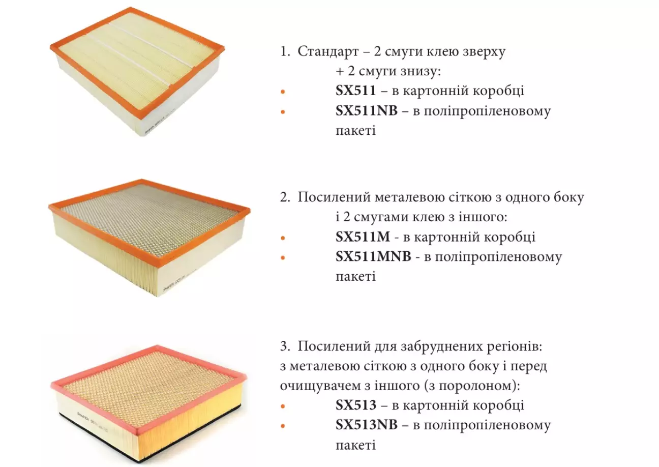 Компанія SHAFER пропонує фільтри, які мають низку конструктивних, та асортиментних особливостей. Для прикладу розглянемо повітряні фільтри для автомобілів Mercedes-Benz Sprinter та Volkswagen Crafter.