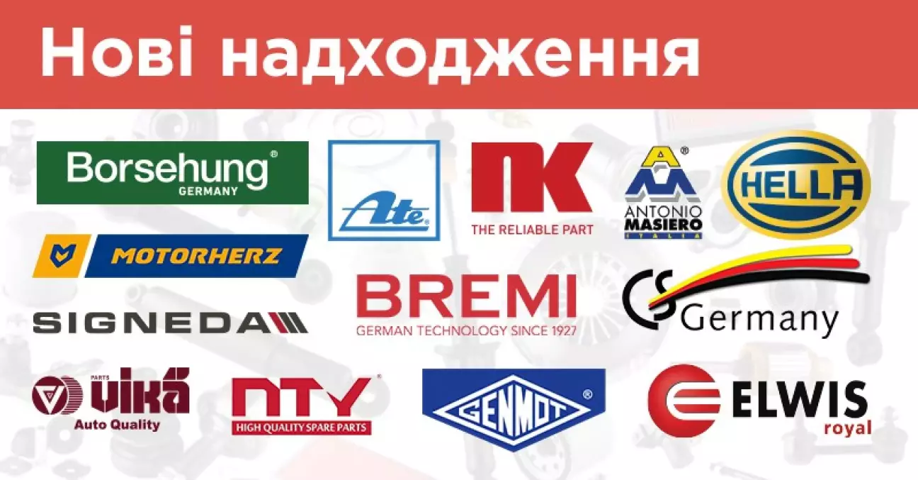 Це деталі від брендів Antonio Masiero, ATE, BORSEHUNG, BREMI, CS Germany, Elwis Royal, HELLA, Motorherz, NK, NTY, SIGNEDA, VIKA.