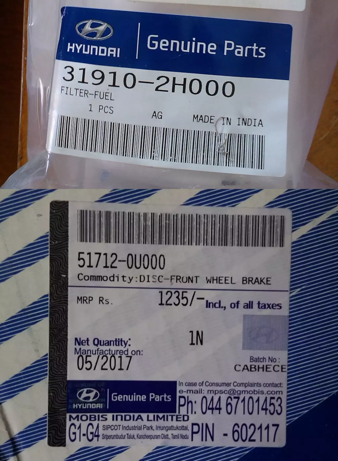 В окремих випадках можна зустріти деталі, вироблені на потужностях в Індії. Такі запчастини часто мають характерні наклейки з особливим шрифтом або маркуванням Mobis India Limited, а іноді — і поєднання двох типів етикеток на одній упаковці.