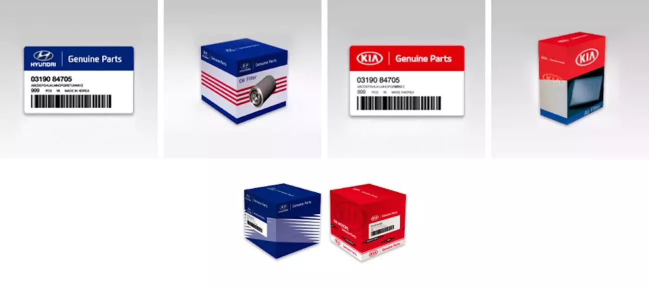 Запчастини, випущені для корейського ринку, легко відрізнити за пакуванням. Пакування завжди брендоване автовиробником, одним із трьох — Hyundai, KIA, Genesis. На упаковці поряд з логотипом автомобіля присутні ієрогліфи 순정 부품, що перекладається як Genuine Parts. Також на упаковці (в будь-якій зоні) міститься логотип Hyundai Mobis. Нарешті, в обов`язковому порядку стікер супроводжується артикулом.
