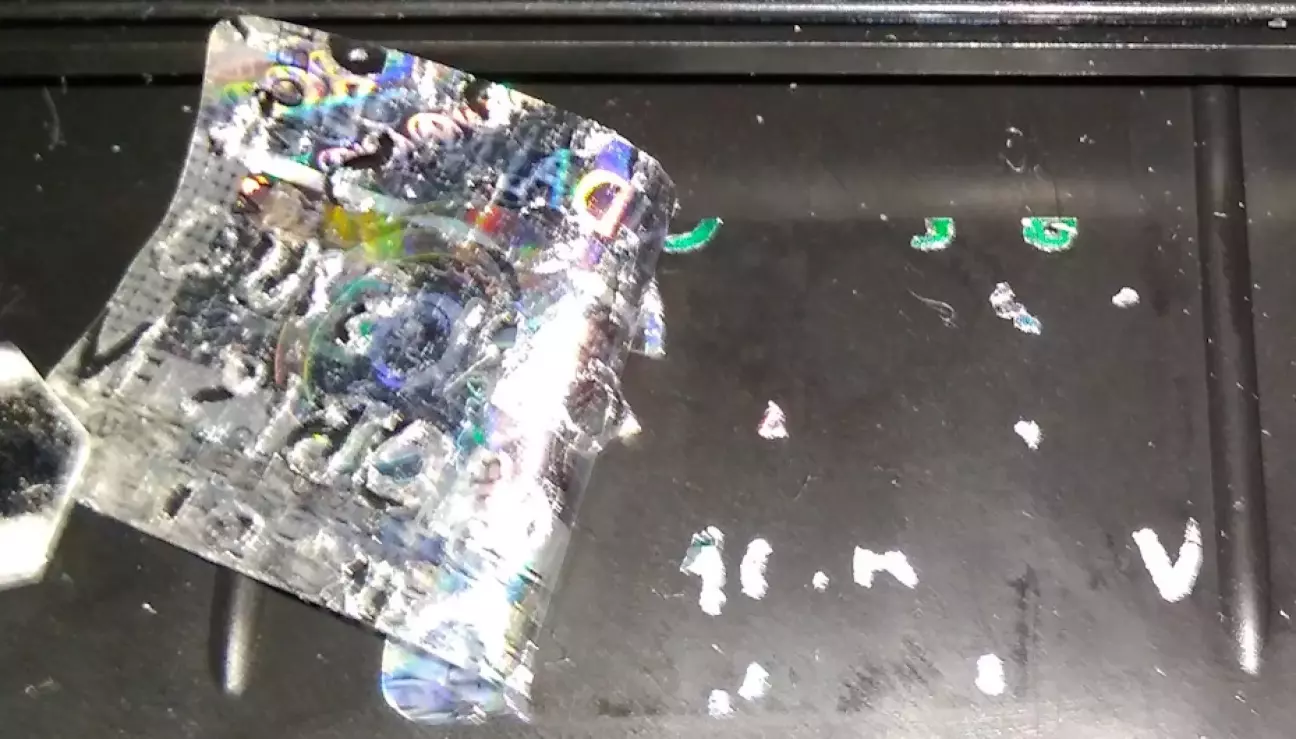 Зліва направо: голограма (спереду), голограма (спереду, 90 градусів), видалення голограми, після видалення голограми