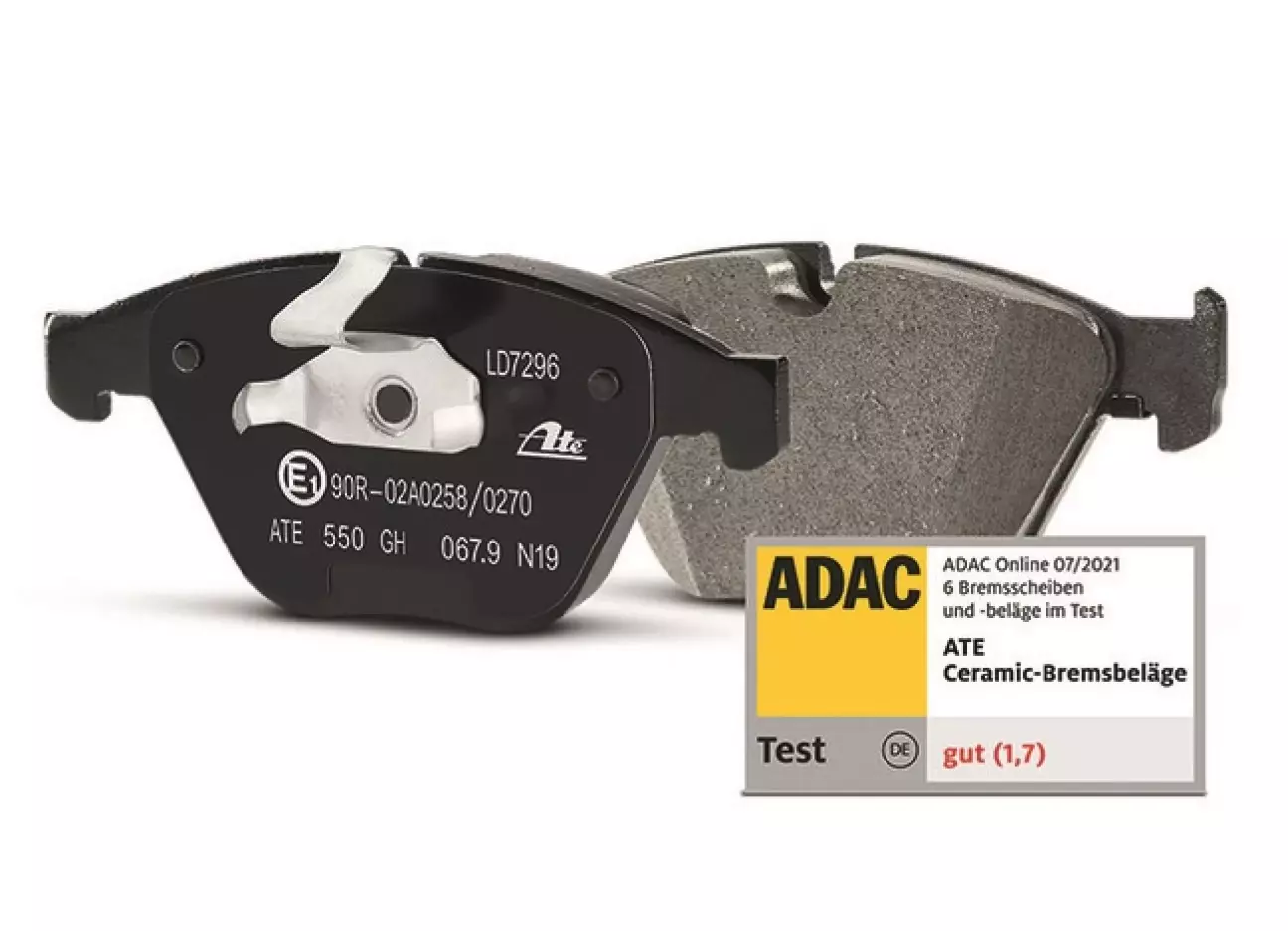 Серед конкурентів у тесті ADAC разом з ATE були представлені ще п’ять брендів і один виробник OE-деталей. За підсумками випробувань бренд отримав загальну оцінку 1,7 («добре»). У тесті в реальних умовах із високими гальмівними навантаженнями колодки ATE Ceramic показали найкращий результат — 1,0, що більш ніж на цілий бал краще, ніж у найближчого конкурента. У випробуванні на гальмівний шлях вони посіли друге місце з оцінкою 1,5 та продемонстрували хороші характеристики зчеплення. Найвищий бал ATE Ceramic також отримали за зносостійкість. Особливо високу ефективність ці керамічні гальмівні колодки продемонстрували в поєднанні з дисками ATE Original.