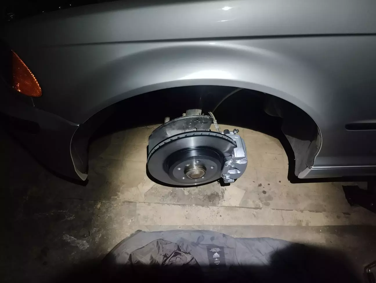 Отже гальма. Передні по заводу на 6 циліндровій 320 маємо: вентильований 286х22мм диск та однопоршневий супорт (54мм поршень).