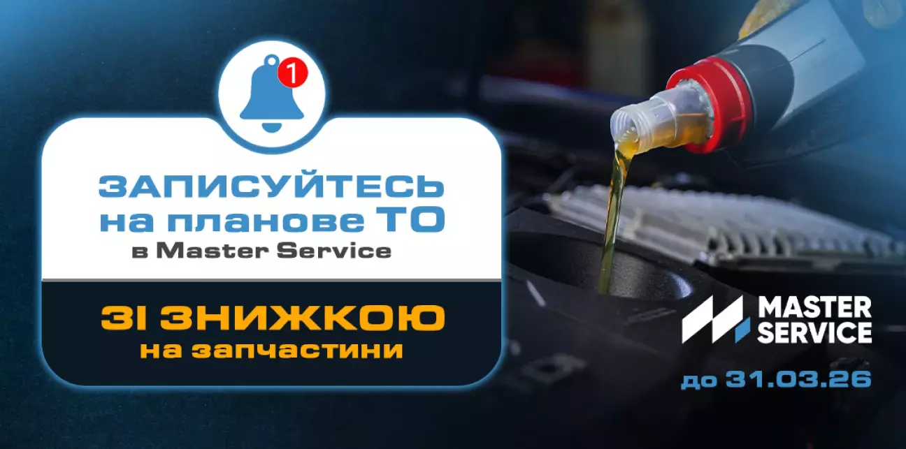 Бонус: При проходженні техообслуговування у Master Service знижка -5% на запчастини для ТО: