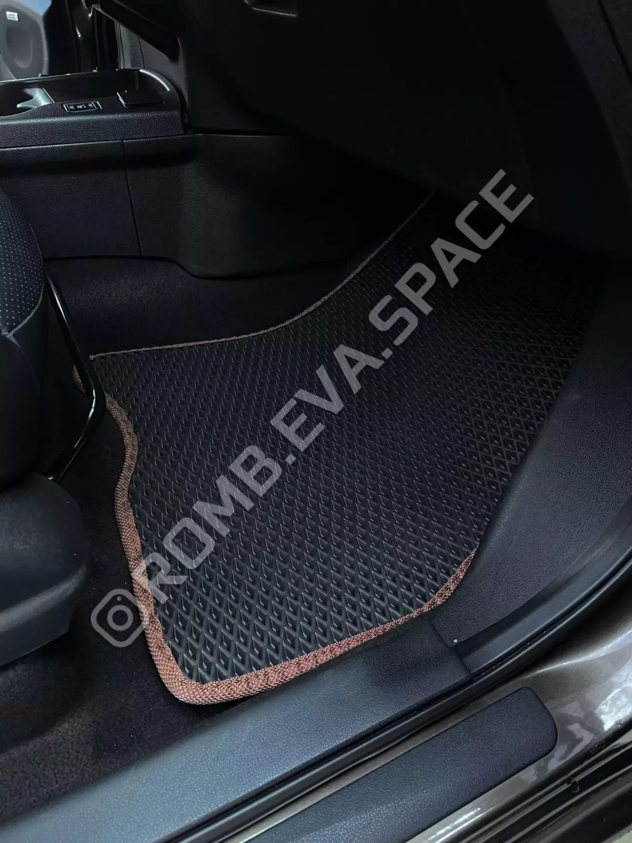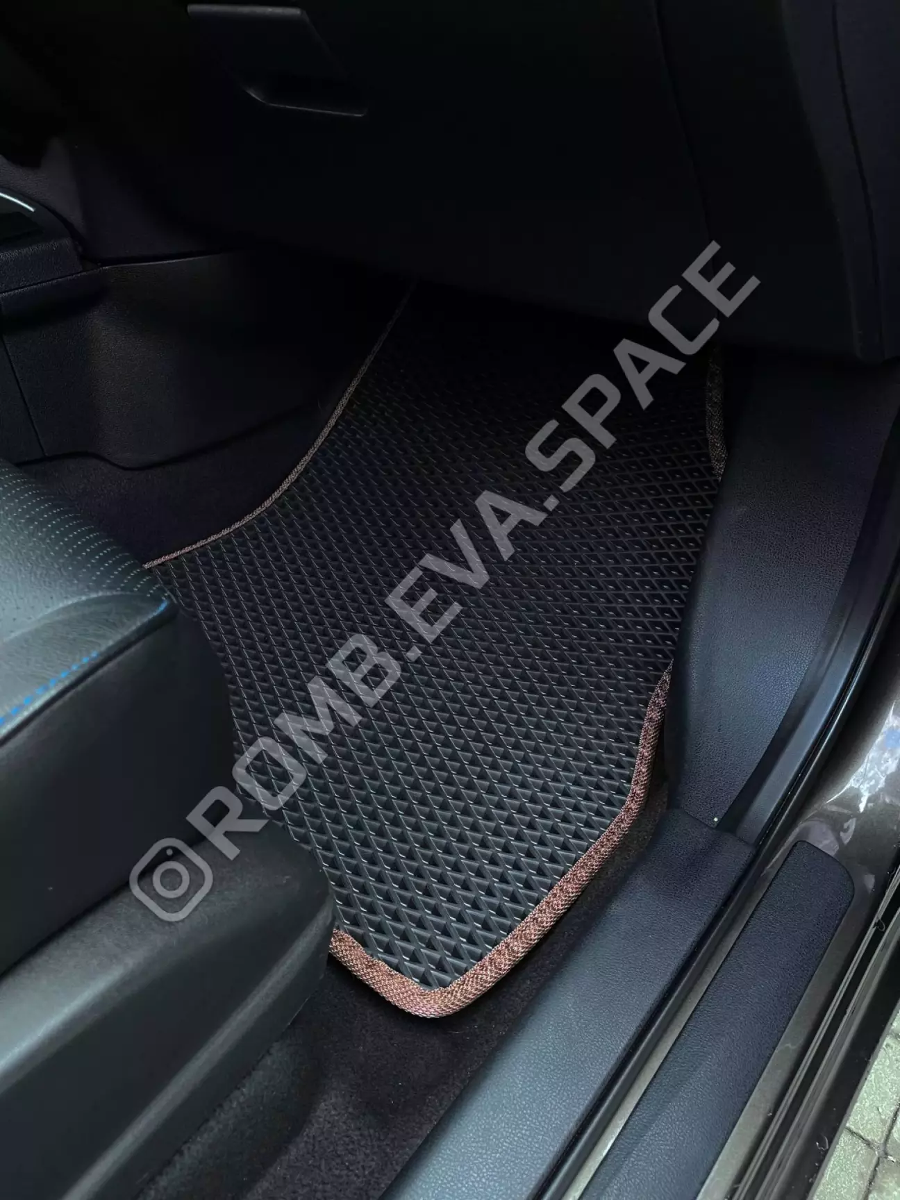 Клієнт обрав найбільш практичний колір: чорний коврик ромб та коричневу окантовку