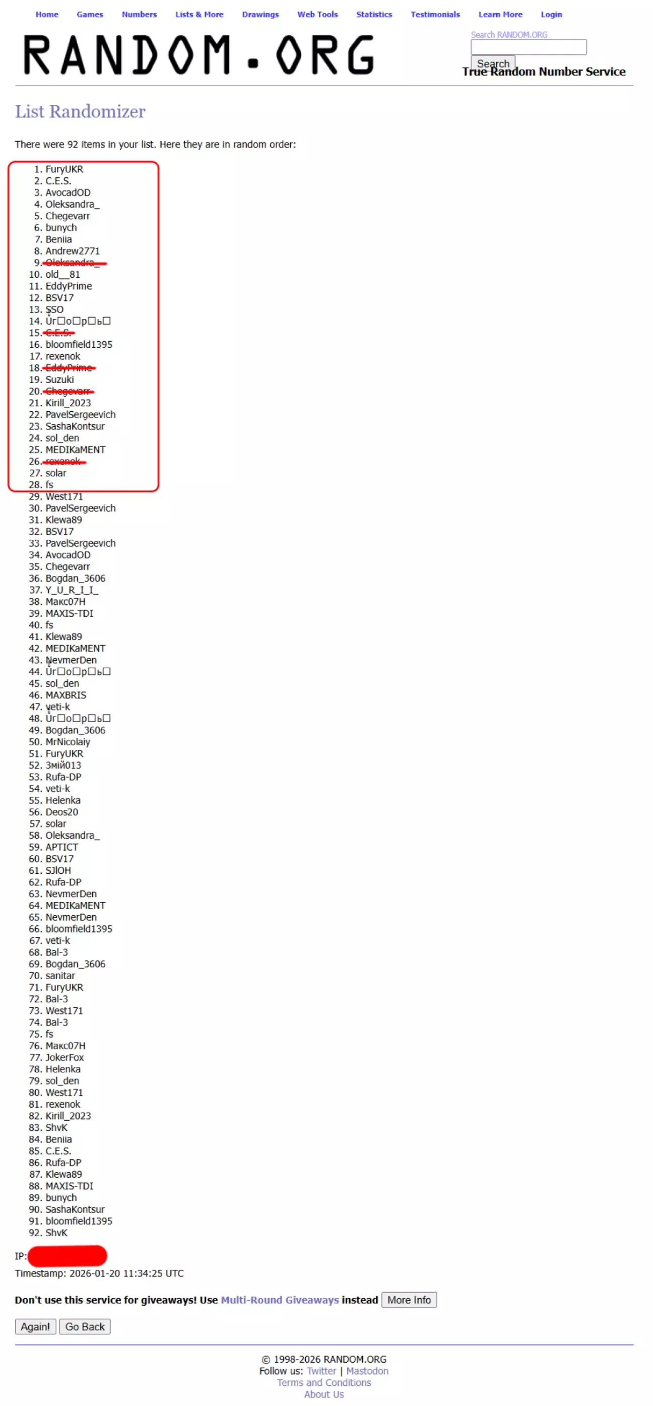 Переможців було визначено автоматично за допомогою random.org.