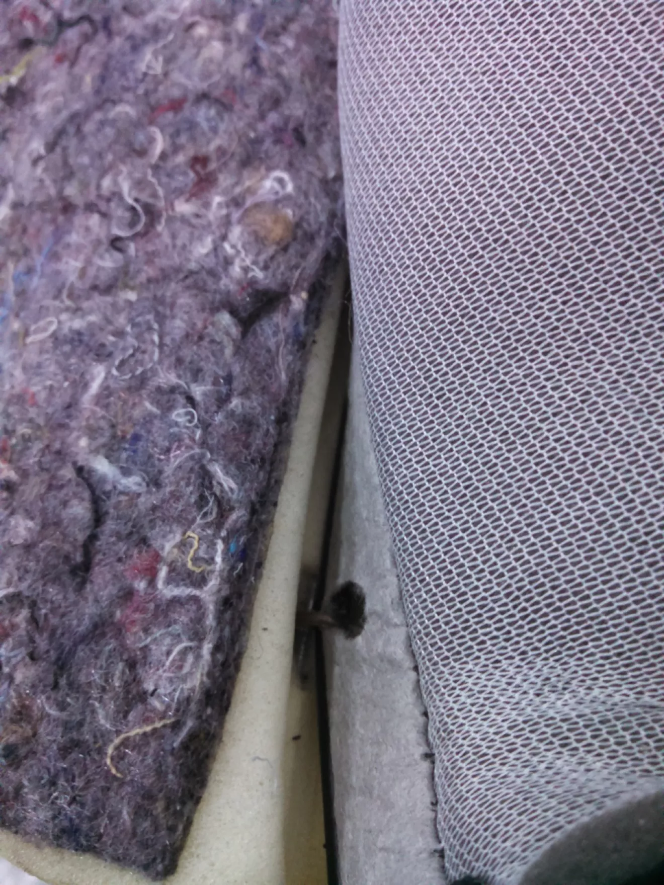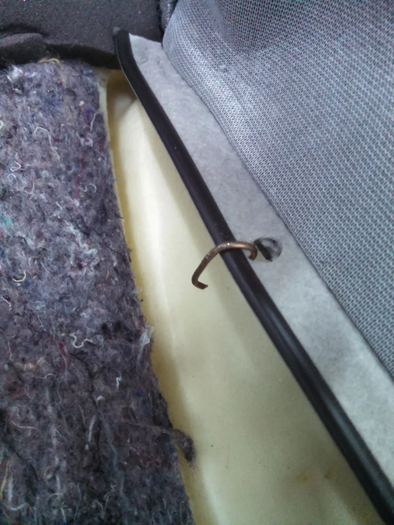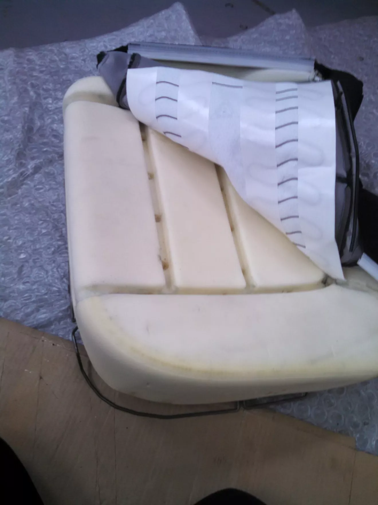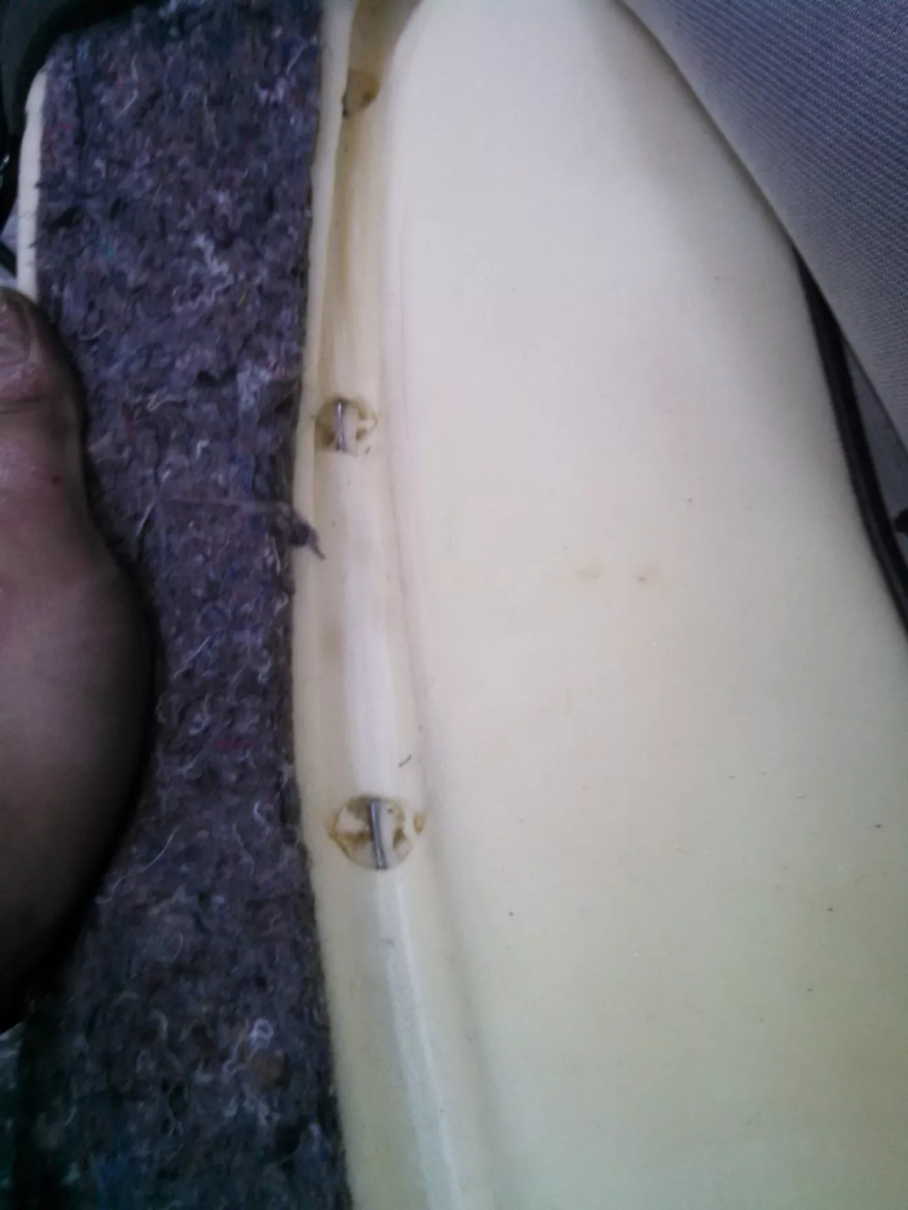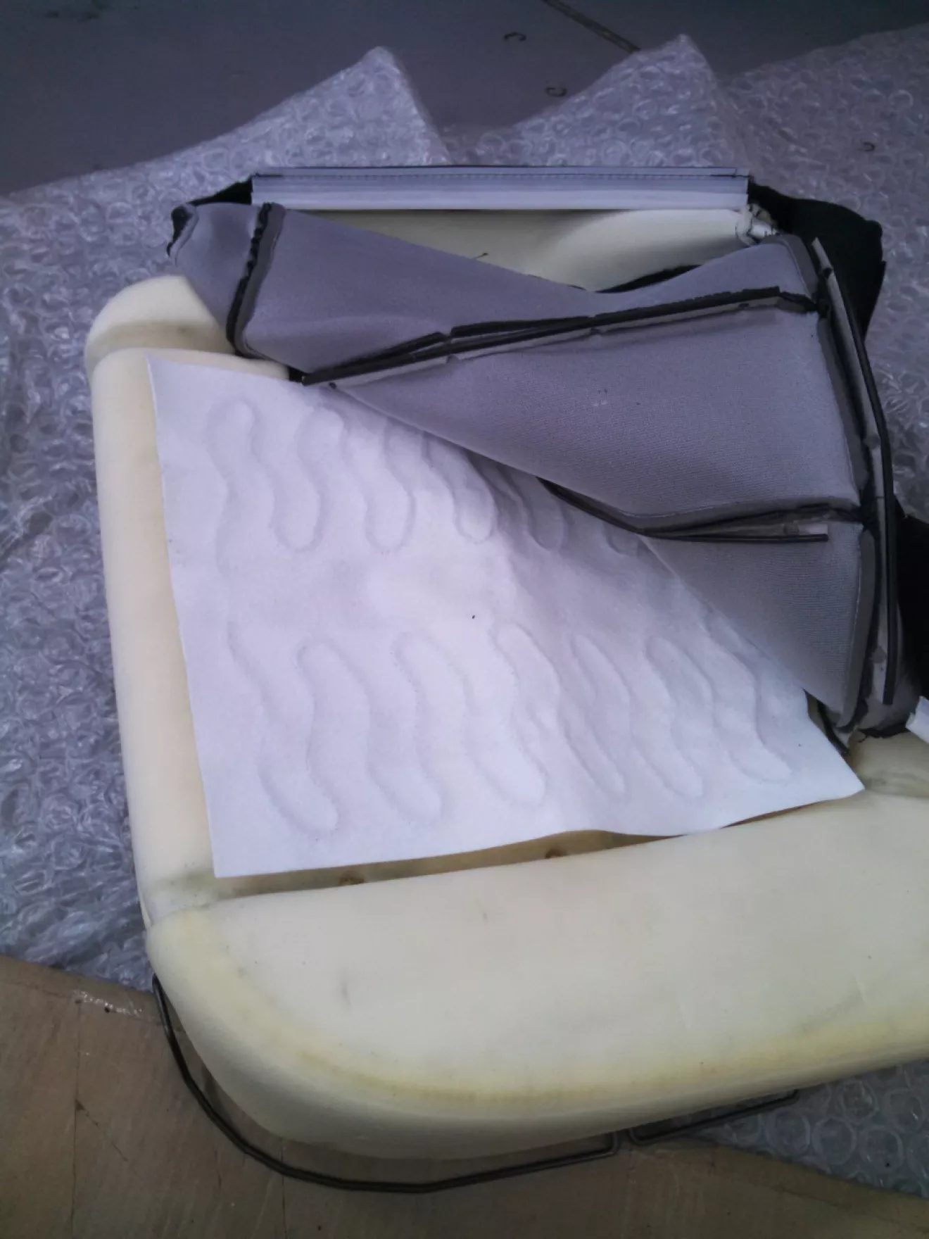 слева поролон сидения — справа обшивка, соединяется это все медными колечкамиФото не очень получились, но суть простая. Обшивка крепится к поролону медными колечками. Их нужно разогнуть для того что бы вставить обогрев.