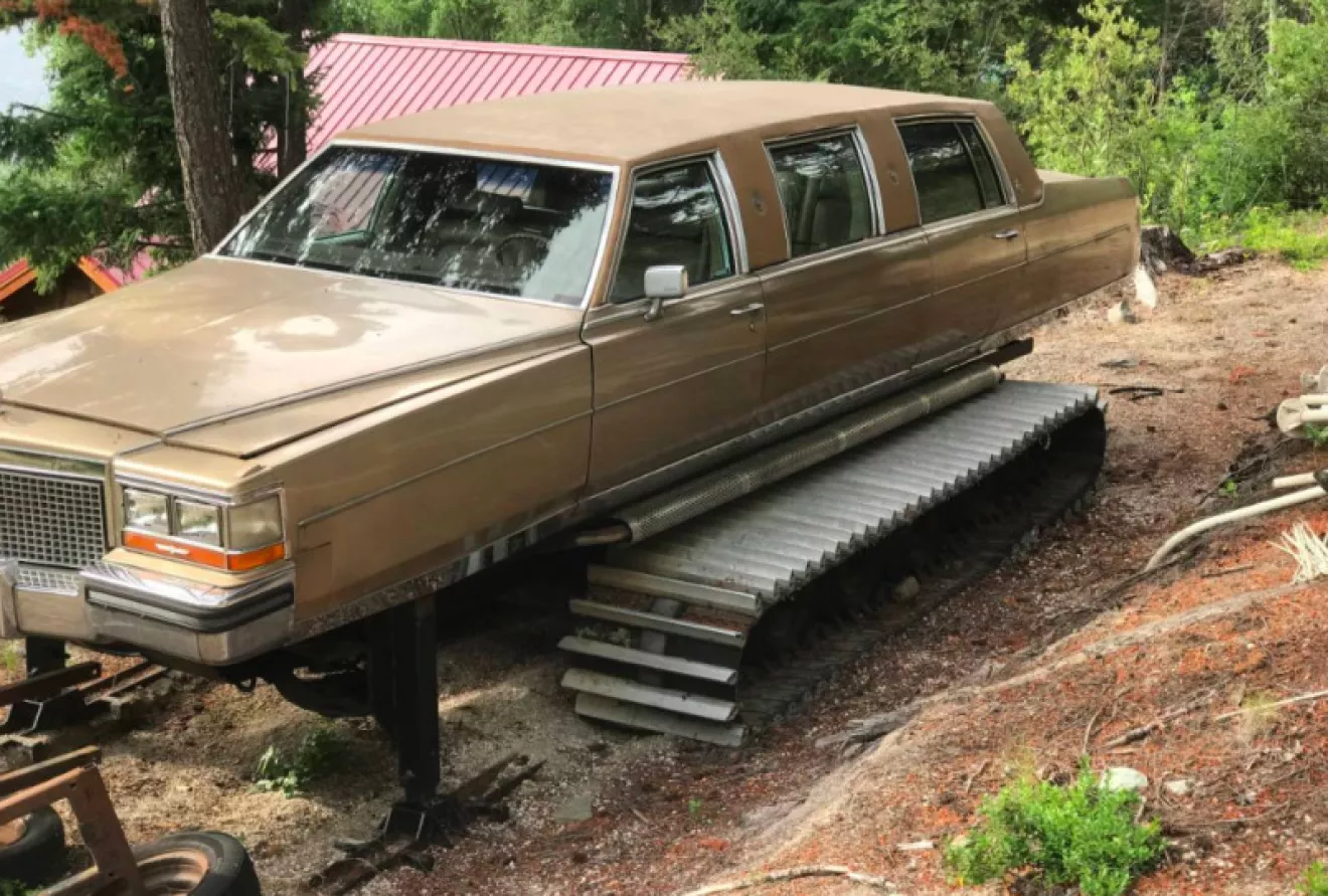 В Ванкувере (Канада) выставлен на продажу очень необычный Cadillac Brougham 1989 года. Лимузин Кадиллак переделали в гусеничный снегоход для суровых зим.