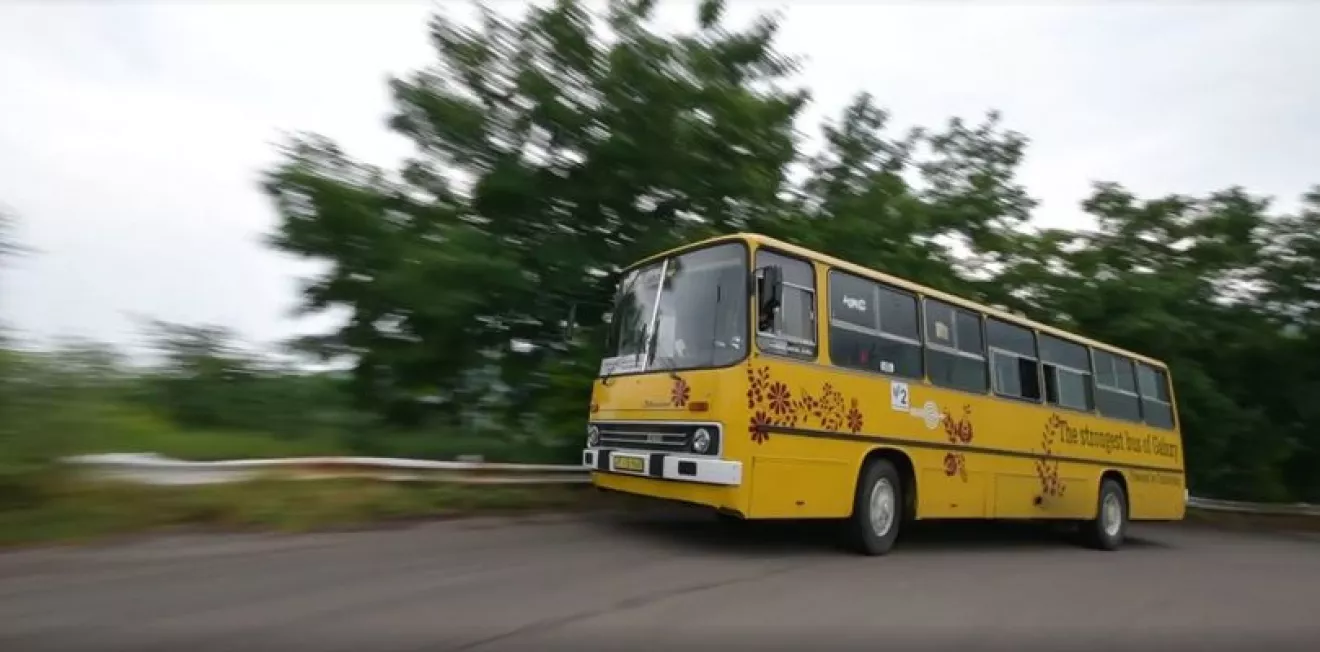 Мало кто когда-либо видел, чтобы на желтом городском автобусе Ikarus 260 участвовали в ралли, тем более на довольно опасном маршруте в горной местности.