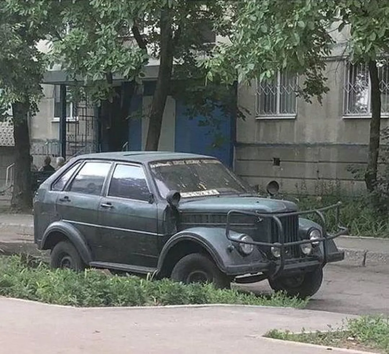 Что это за автомобиль, неясно – можно лишь говорить о том, что перед нами а-ля внедорожник. У машины перед и рама, ходовая позаимствован у ГАЗ-69, а большая часть кузова – у старой Ауди (вроде как). Также самодельный вездеход оснастили массивным кенгурятником.Выглядит машина хотя и жутковато, но в любом случае необычно – внимание на дорогах обеспечено на 100%.