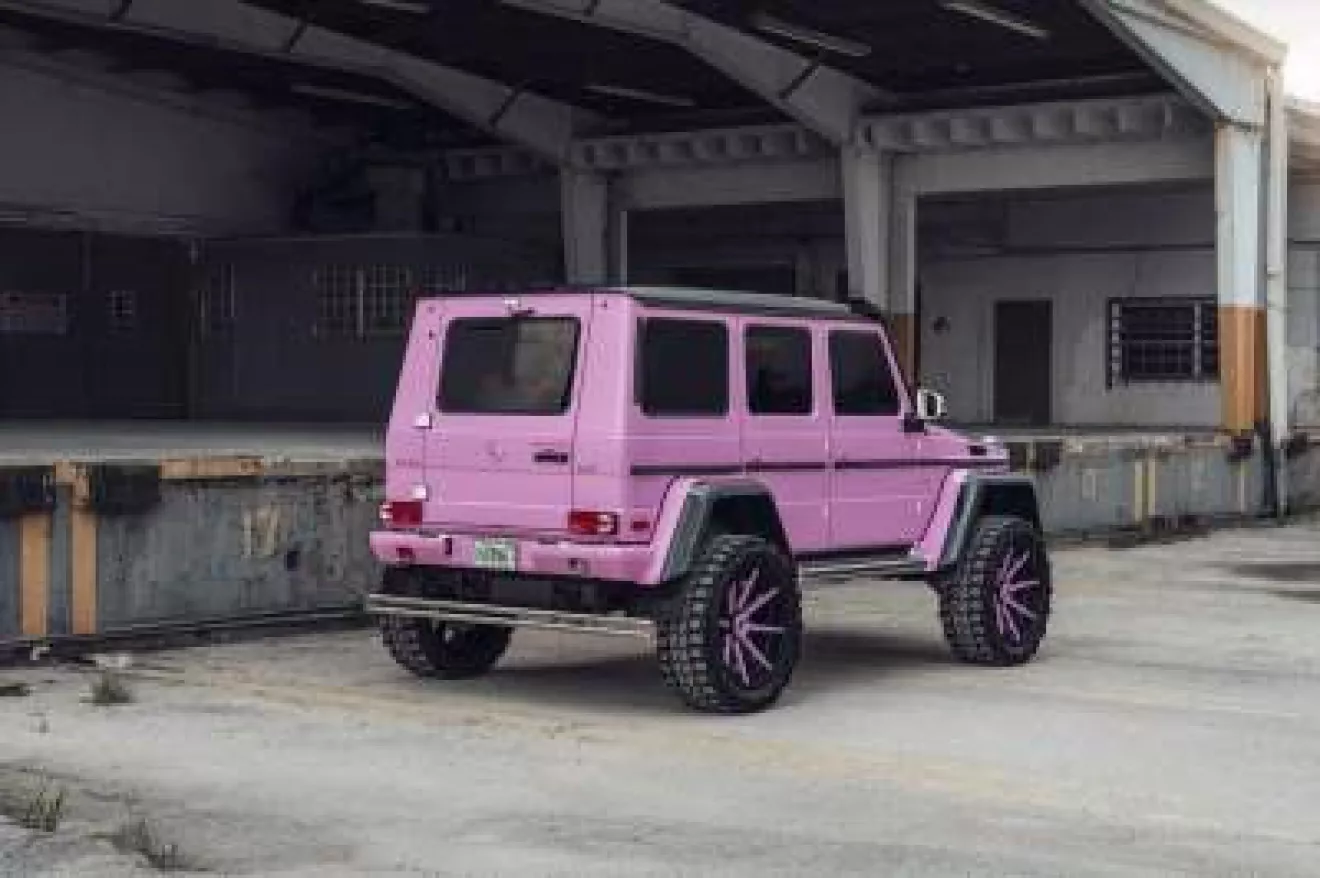 Тюнинг Мерседес Гелендваген выполнили по заказу парикмахера-стилиста из Флориды. Она пожелала превратить Гелик в гламурный авто Барби.