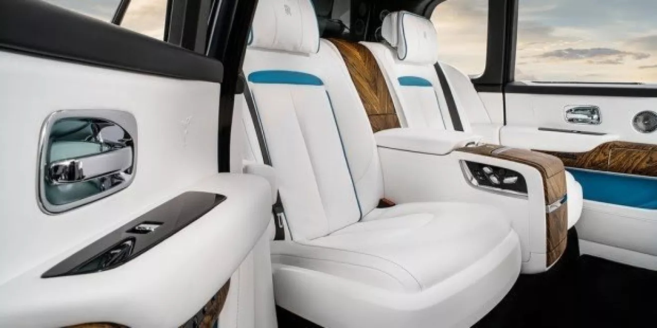 В шасси Rolls-Royce Cullinan инженеры установили передовую пневмоподвеску с изменяемым клиренсом, которая даже на самых трудных дорогах ведет себя как “волшебный ковер”. Также автомобиль получил усовершенствованную полноприводную систему со специальным режимом использования всего крутящего момента на затрудненном бездорожье, позволяющим машине без проблем ехать по гравию, мокрой траве, грязи, снегу или песку. Кроме того, для первого кроссовера Роллс-Ройс не страшен брод глубиной до 0,54 м, а когда его салон хотят покинуть водитель и пассажиры, кузов машины можно опустить на 40 мм для упрощенной высадки. Интерьер Rolls-Royce Cullinan сделан на высоте: здесь много кожи, деревянных элементов, два цифровых дисплея (приборка плюс экран мультимедиа), в то время как второй ряд будет доступен в двух конфигурациях: с двумя раздельными креслами либо диваном на трех седоков. Изюминкой заднего ряда является раздвижная стеклянная перегородка, которая изолирует кабину от багажного отделения. Такое решение положительно сказалось на шумоизоляции и позволяет сохранить в салоне авто оптимальную температуру при открытой двери багажника.
