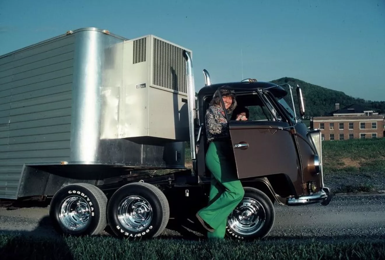 Диковинный седельный тягач из Volkswagen Transporter был сделан в далекие 70-е гг и в свое время даже попал на страницы известного журнала Hot Rod Magazine. Машина дожила до наших дней, хотя и без полуприцепа, и даже недавно появилась в продаже не eBay, пишет carakoom.com