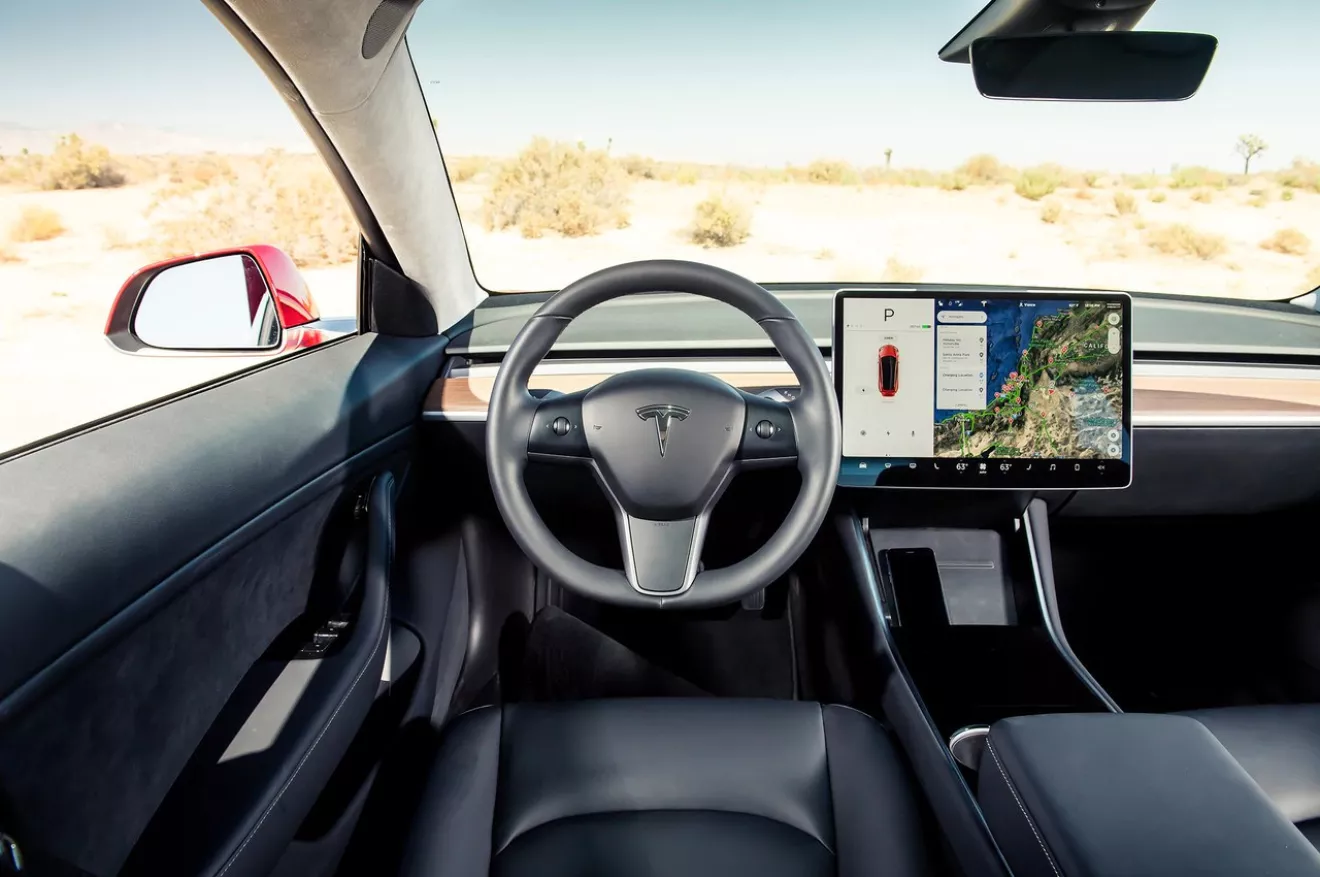 -В салоне царство экстремального минимализма. Нет ни приборов, ни кнопок. По центру гордо расположился горизонтальный 15-дюймовый экран, который и вобрал в себя все органы управления и индикации.