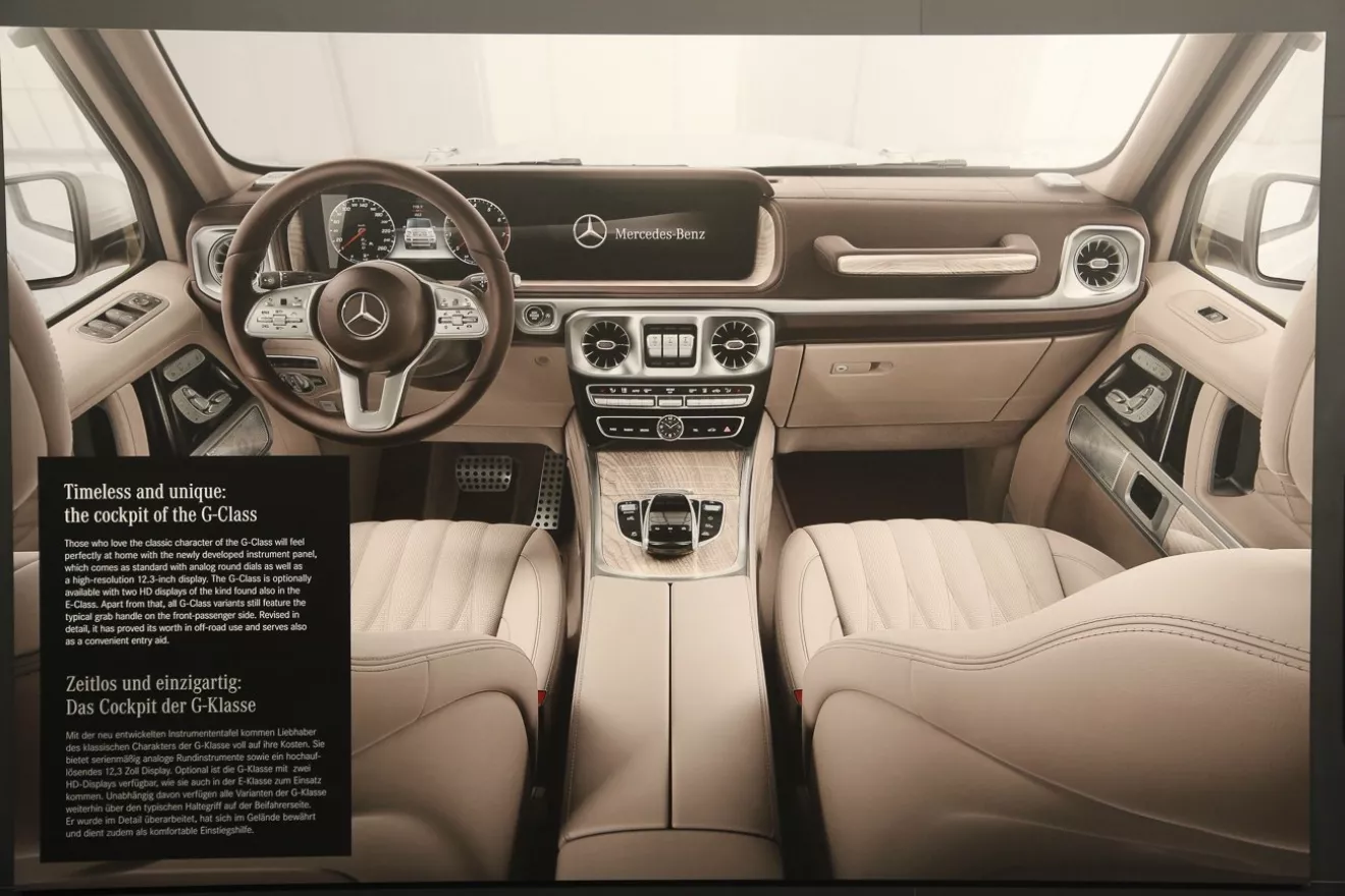 В следующем месяце на автосалоне в Детройте будет представлено новое поколение внедорожника Mercedes-Benz G-Class, но заглянуть в салон этого автомобиля можно уже сейчас благодаря официальным фотографиям, предоставленным самим автопроизводителем. Судя по снимкам, интерьер Гелендвагена станет намного современнее.