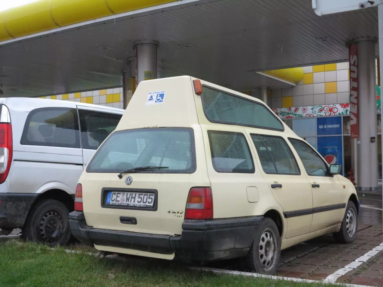Оказывается, этот Volkswagen Golf Variant доработан специализированным кузовным ателье и предназначен для перевозки людей с ограниченными физическими возможностями в колясках. Именно для удобства погрузки-выгрузки инвалидных колясок машине и приподняли крышу, а заодно и заднюю дверь.
