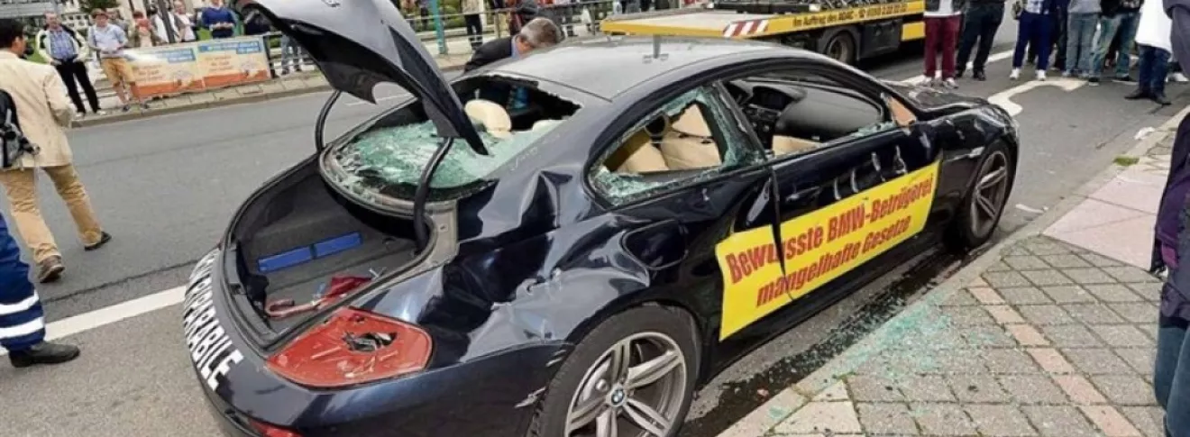 Мужчина неоднократно уничтожал автомобили немецкого автопроизводителя в знак протеста. Житель Италии Пормохсени Хади держит обиду на BMW еще с 2008 года. Почти десять лет назад он приобрел BMW M6 и с самого начала эксплуатации начались проблемы: владелец жаловался на вибрацию, шум в двигателе и стук в трансмиссии. По версии Хади, дилер и автопроизводитель отказались признать проблему. В итоге мужчина приостановил платежи за машину, испортив тем самым себе кредитную историю в банке. С этого момента итальянец в прямом смысле объявил войну баварцам. Так, Хади уже дважды публично выражал свою нелюбовь к BMW. Первый раз это случилось в 2013 году на автосалоне во Франкфурте — тогда мужчина при помощи кувалды и топора разбил BMW M6 стоимостью 120 тыс. евро. Год спустя он повторил акцию, уничтожив автомобиль немецкой марки неподалеку от входа на автовыставку в Женеве. И вот после трех лет затишья Хади снова себя проявил. На этот раз мужчина сжег BMW 7-серии напротив штаб-квартиры «баварцев» в Мюнхене. По традиции акция протеста сопровождалась лозунгами, о том, что «BMW обманывает и шантажирует своих клиентов». Сообщается, что пожарные довольно быстро прибыли на место инцидента и потушили полыхающий седан. За спасателями поспели полицейские, которые задержали Хади. Впрочем, угроза штрафа и даже ареста, судя по всему, не пугают мужчину. Уже будучи закованным в наручники, он произнес лишь одну фразу: «Я продолжу». Отметим, что комментариев со стороны BMW пока не поступало. Подробнее: avtoblog.ua/news/jaryj-ne…vtomobili-bavarskoj-marki