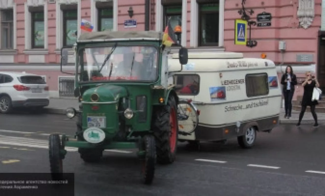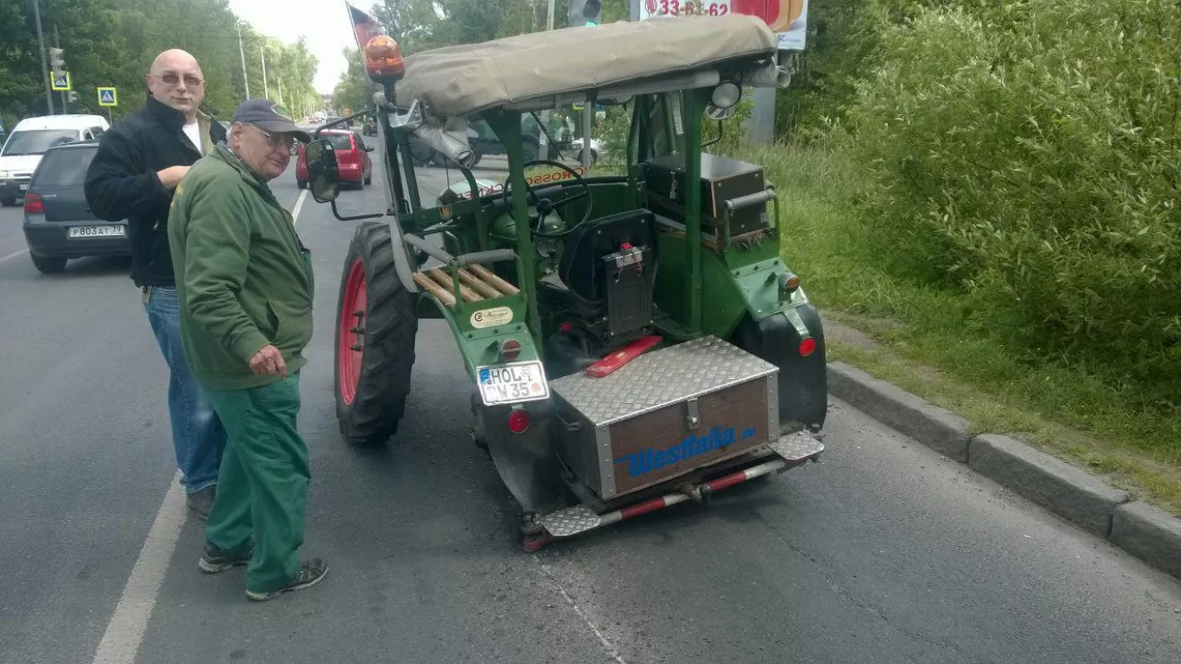 Пожилой немец покинул свой родной город в Нижней Саксонии еще четвертого мая и 4 июля прибыл в СПб. По словам пенсионера, самую большую остановку путешественнику пришлось сделать в Калининграде, где у его трактора сломалось колесо.