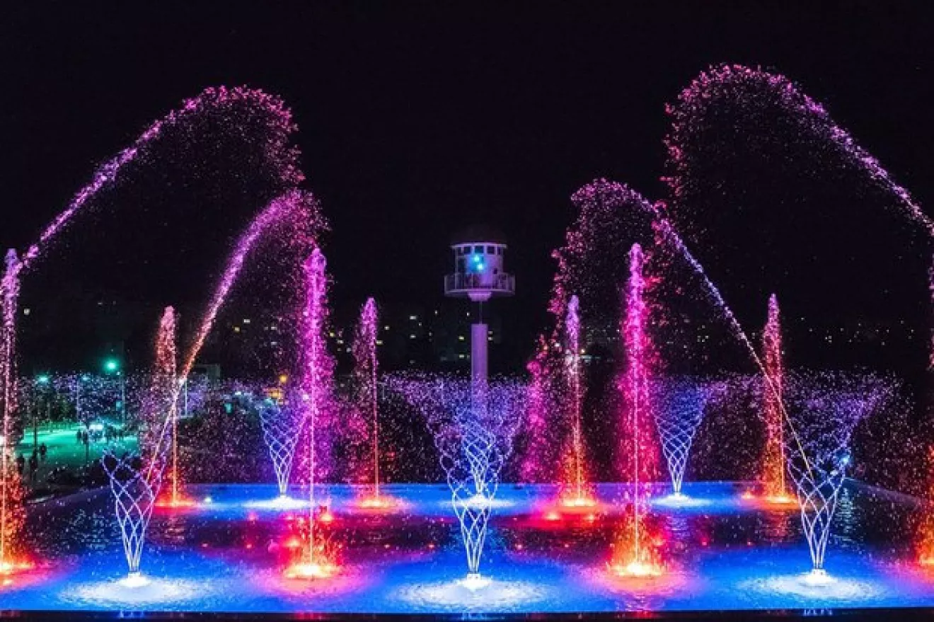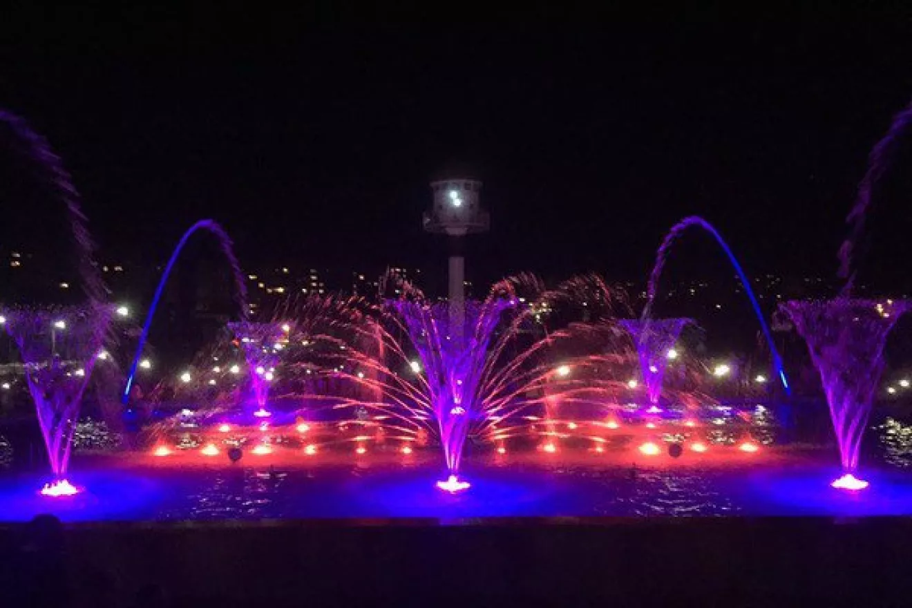 Варто відмітити, що такий комплекс є унікальним, адже фонтани розміщені як на воді, так і на суші, на відміну від фонтанів у Вінниці. Він також має 200-метровий водний екран, на якому транслюватиметься все: від мультфільмів до футболу.