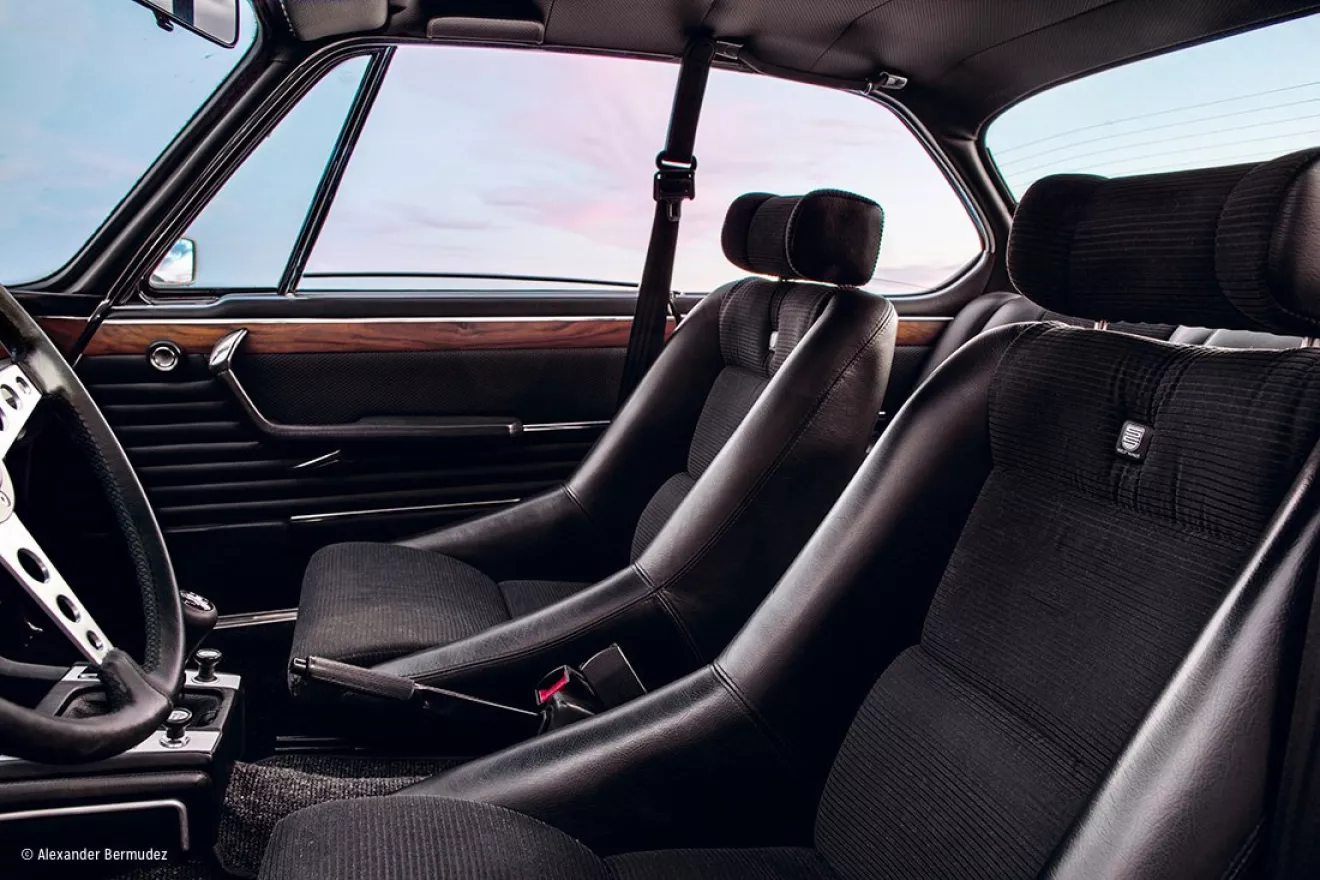 Восстановлением проработанного до мельчайших деталей интерьера занимался Хуан Ортис (Juan Ortiz). Внутри вы найдете глянцевые элементы отделки под черный орех, изготовленные вручную итальянским мастером мебельного искусства в Коста-Меса, вещевое отделение от CSL, скрытую систему кондиционирования воздуха с вентиляционными решетками от CS coupé… И сиденья с кастомной твидовой обивкой, которую так любит бульдог Штерна.