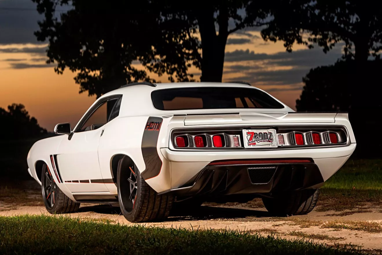 История постройки началась когда Casey Hornik купил насквозь ржавый кузов, на задворках Индианы и притащил его в Z Rodz and Customs. Кузов был настолько ржавым что разгрузка его с трейлера по средствам вилочного погрузчика не была такой уж ужасной, но зато потом выяснилось что лонжероны и прочие кости целы, как это не странно, с ней можно было работать. Если отследить номер то становится ясно что машина сошла с конвейера в 1970м в Plymouth’s Hamtramck, Michigan как 340 ’Cuda.