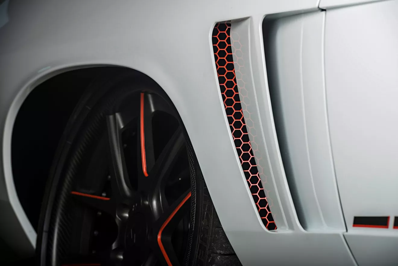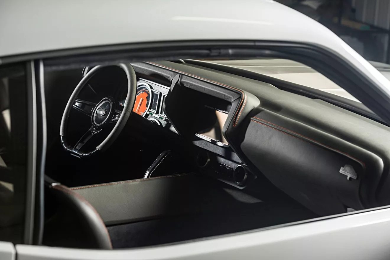 Дальше больше — для аутентичности на крыльях проделали "жабры", ручку двери перенесли на задние панели, в качестве задних фонарей использовали перевернутые LED фонари 1971 Dodge Charger RT SE, капот — переделанный и перепиленный капот от 1970 Charger. Так же Z Rodz переделали передний бампер — Caliber Mold & Machine изготовили кастомную решетку и установили ее между Oracle Halo фарами. Лобовое и задние стекла тоже не простые, а изготовленные из акрила в компании AM Hot Rod Glass.