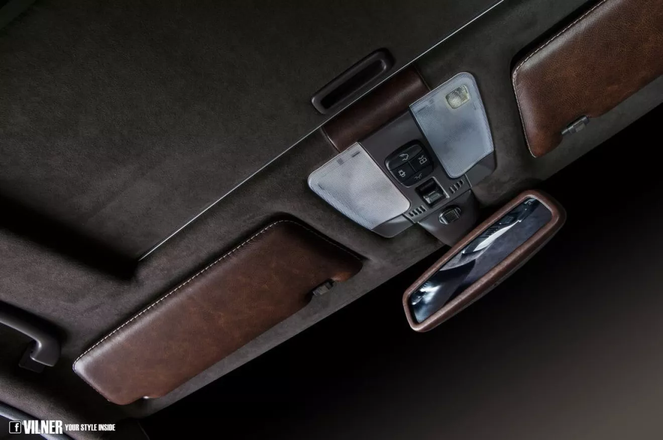Внутри автомобиля также можно встретить бросающуюся в глаза контрастную белую строчку, новую мультимедийную систему и новые напольные коврики. Для хозяина данного Mercedes-Benz E55 AMG 4Matic ателье Vilner также подготовило стильную дорожную сумку, выполненную в общей с салоном и багажником цветовой гамме.