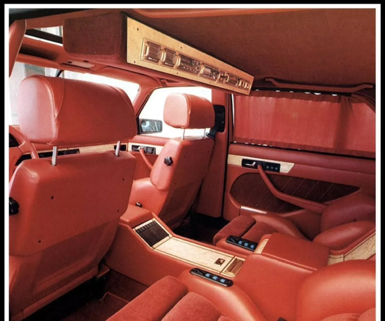 • Увеличенную консоль из орехового дерева между задними сиденьями, которая содержит мини-бар, небольшой холодильный отсек, ТВ и видео-оборудование