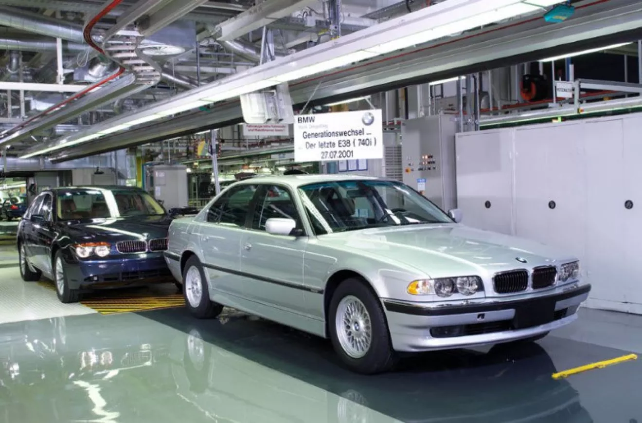 Последняя BMW E38 на конвейере Июль, 2001 год. В 1995-м году выпуск BMW e32 остановился и на конвейер стала BMW e38. И это уже бала совершенно другая модель. Большинство узлов и агрегатов были разработаны снуля. Если предыдущее поколение общественность не сразу радужно приняло, то третье очень даже радужно. В дизайне сразу прослеживались фамильные черты, низкий и и широкий силуэт.