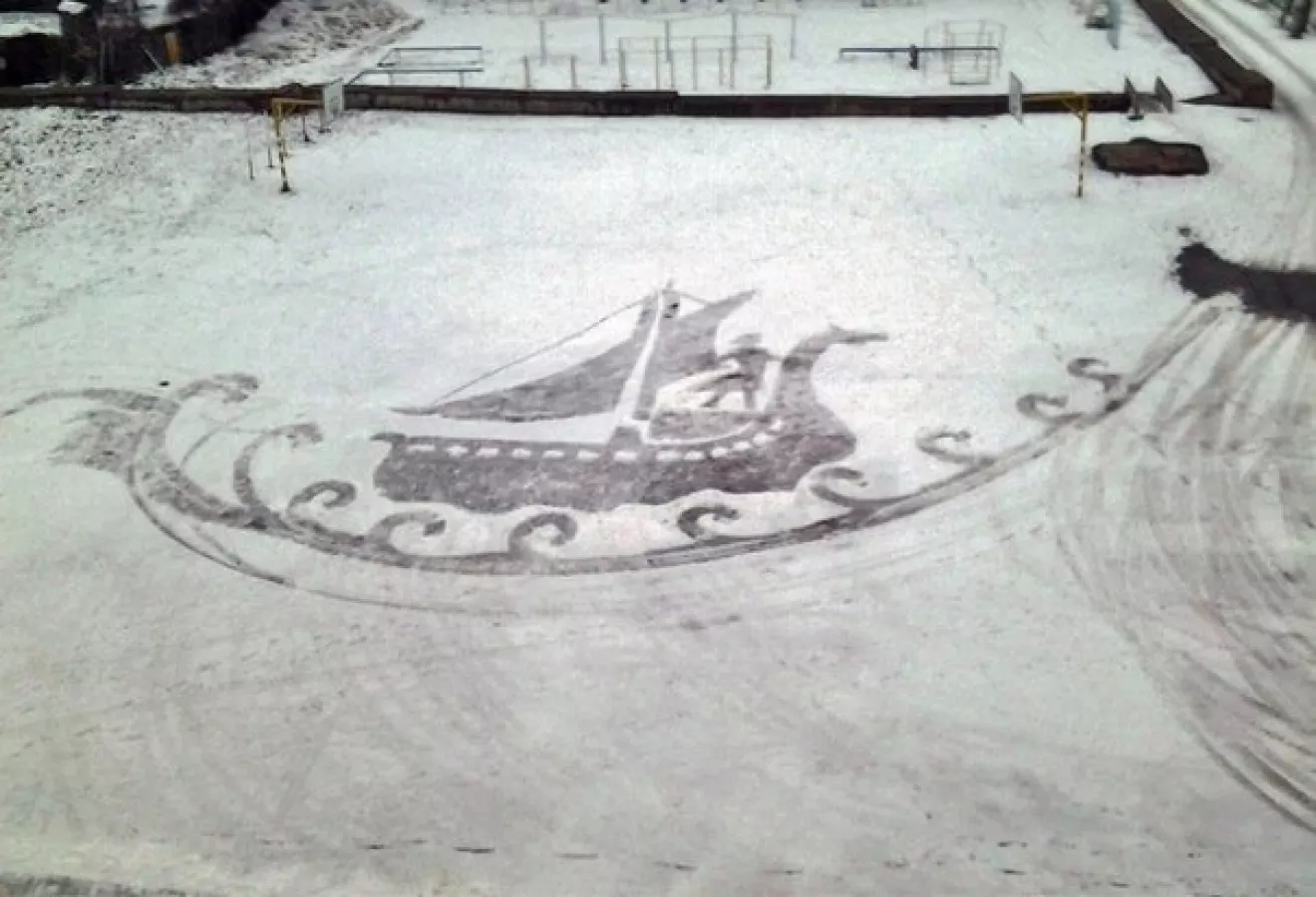 Дворник из Ижевска каждое утро радует новым рисунком. Желаю каждому такого дворника))