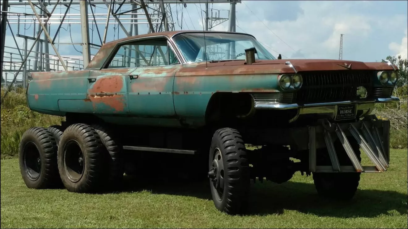 Безумный Cadillac Deuce DeVille.Этот монстр в духе Безумного Макса называется "Deuce DeVille", а построил его Мэтт Грувер. Мэтт взял раму от 2,5-тонного грузовика M35 и водрузил на неё кузов Cadillac de Ville 1964 года выпуска.