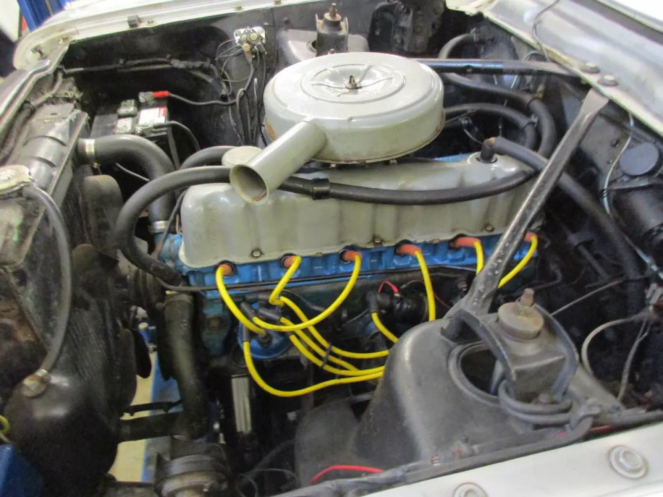 Начинка машины изменилась, но не слишком радикально. Теперь доступны всего три мотора — рядная шестерка на 170 cid и 101 л.с. и два виндзора V8 — 221 cid (145 л.с.) и 260 cid (164 л.с.). Кто не в курсе, cid — это cubic inch displacement. В стандарте 3-ст МКПП, за отдельную плату ставился 3-ст АКПП, а еще за отдельную плату ставился овердрайв, то есть трансмиссия уже получалась четырехступенчатой с повышающей передачей. Размеры уменьшились, база укоротилась почти на 100 мм до 2934 мм