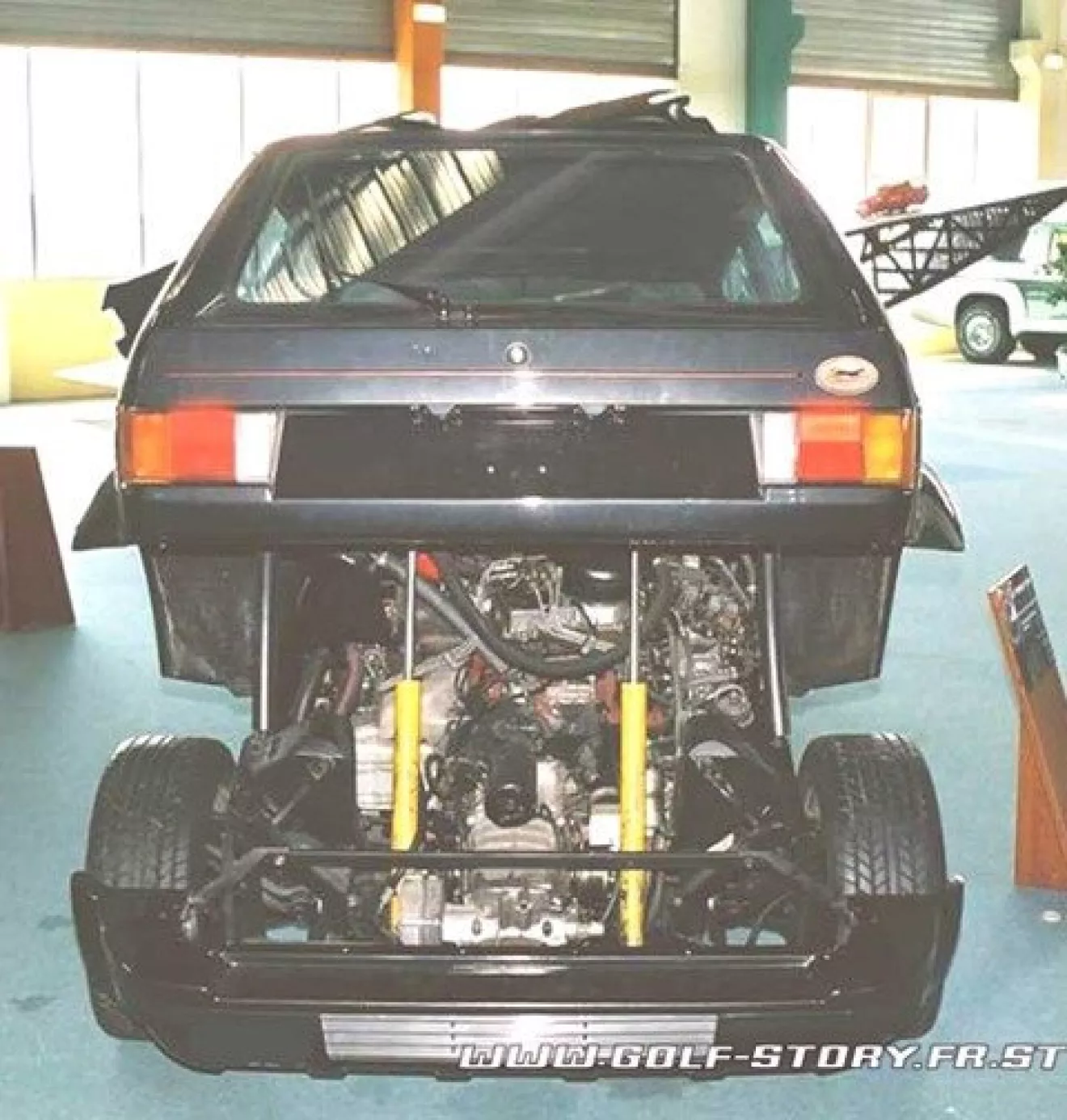 А там 6-цилиндровый двигатель, объёмом 3,3 литра, прямо из Porsche 911 Turbo (930 модель). Турбо-мотор мощностью 330 лошадиных сил занял место задних сидений и расположился на подрамнике, способном поворачиваться, приподнимая кузов хэтчбека более чем на 1 метр.