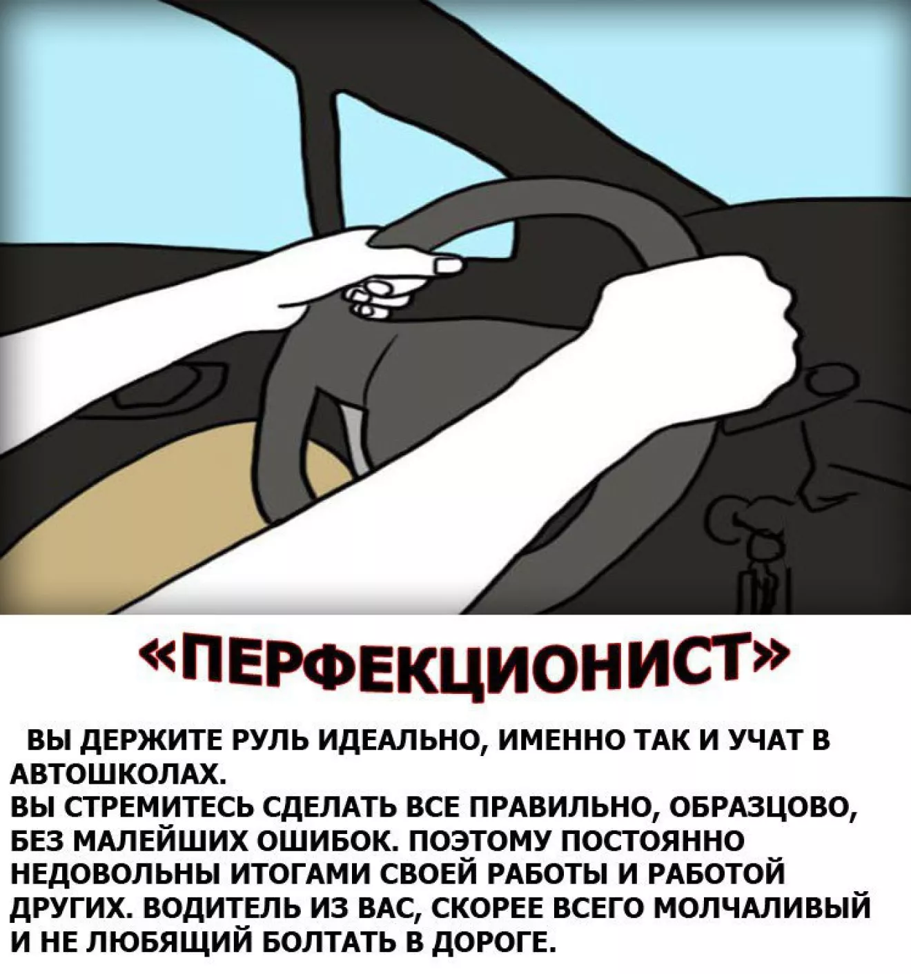 Какие только психологические исследование не проводят! На этот раз давайте проверим утверждение, что характер водителя можно узнать по тому, как он держит руки на руле.