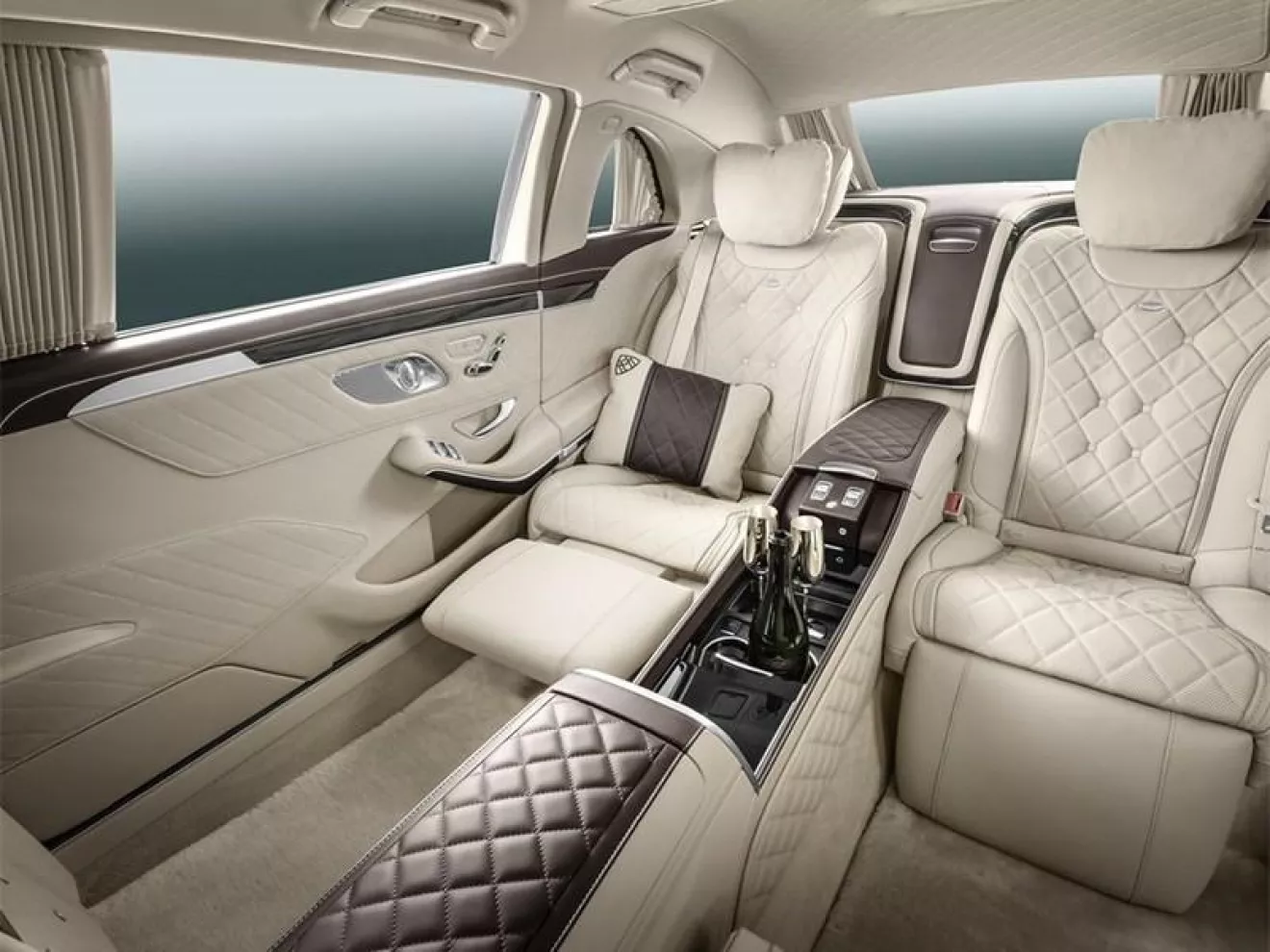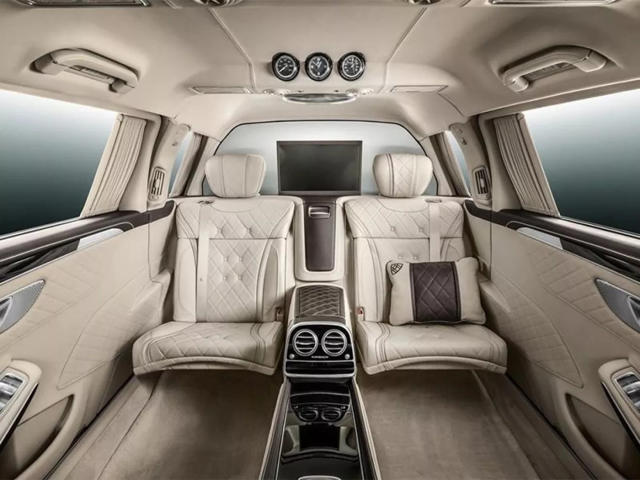 Mercedes-Maybach S600 Pullman оснащается фирменным V12 мощностью 530 сил. Но в данном случае важна не мощность и технические характеристики, а салон автомобиля. Именно он позволяет владельцу абстрагироваться от бытия, окружить себе роскошью даже в условиях передвижения по грязным улицам и закрыться от завистливых взглядов обычных смертных. В помощь – электрические шторки и перегородка, отделяющая пассажира(ов) от водителя.По умолчанию Pullman предлагается с двумя диванами, установленными друг напротив друга. По желанию заказчика диван может быть и один, чтобы можно было вольготно разлечься. Сиденья имеют функции массажа, подогрев и охлаждения. Кроме того, их можно откинуть на 43,5°.Для расслабления также предусмотрены бар и Hi-End аудиосистема Burmester с эффектом «объемного» звучания. В оформлении интерьера, конечно же, используются только натуральные и самые дорогие материалы.