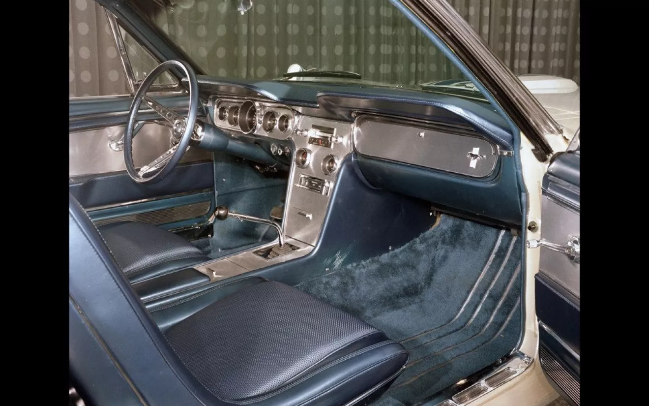 Была и еще одна очень важная деталь. На крышку топливного бака, обычно украшенную логотипом в виде мустанга, были нанесены инициалы “EBF II”. Что означало Edsel B. Ford II (так звали правнука Генри Форда). Это был подарок президента Ford Motor Company Генри Форда II своему сыну на 16-летие, которое пришлось на 27 декабря 1964 года.