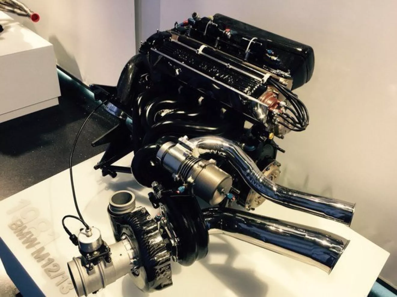 Мотор BMW на базе блока М12/13, 1981 год, 1.5 литра, турбина твин-скролл с давлением 4.4 бар, мощность -1100 лошадиных сил. (Музей BMW, Мюнхен).