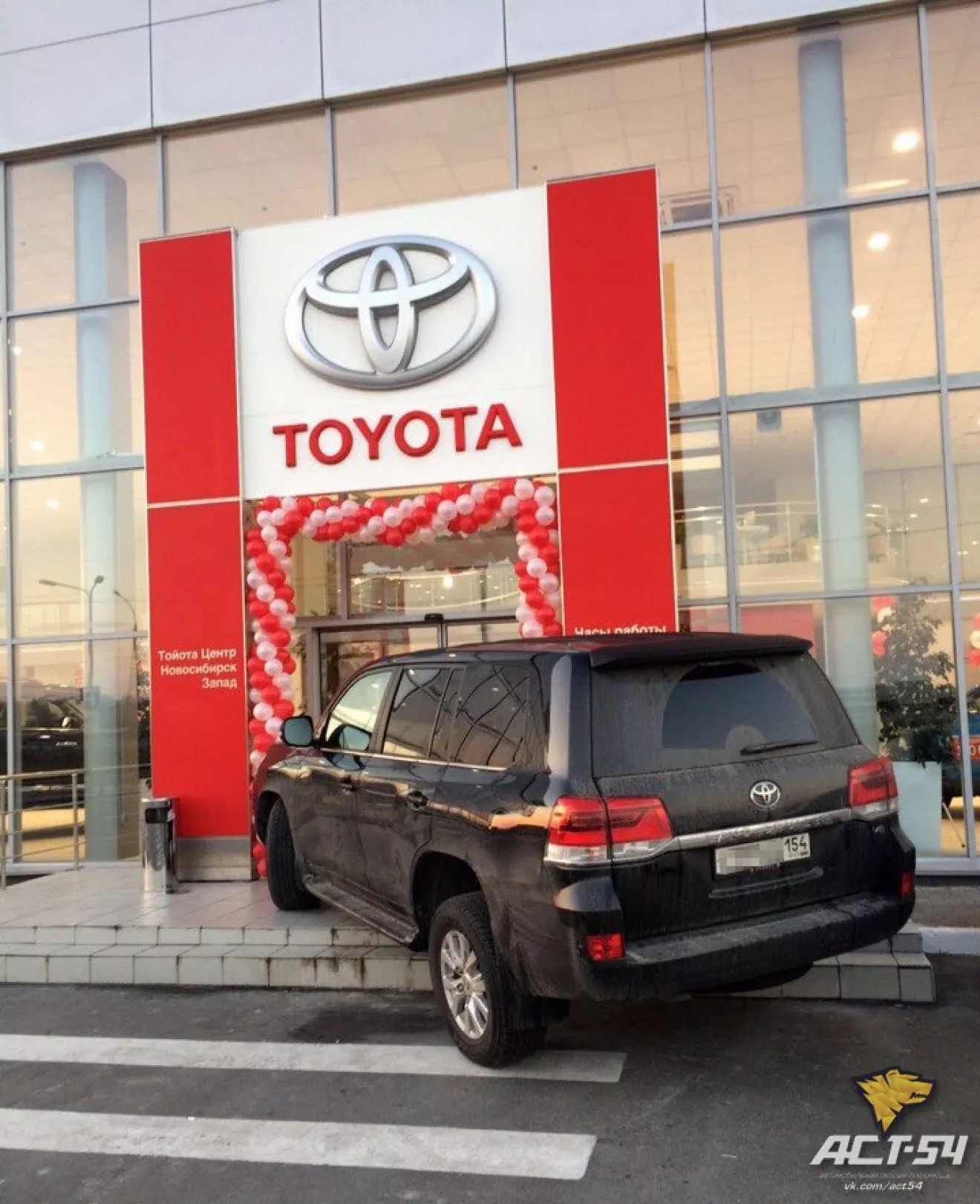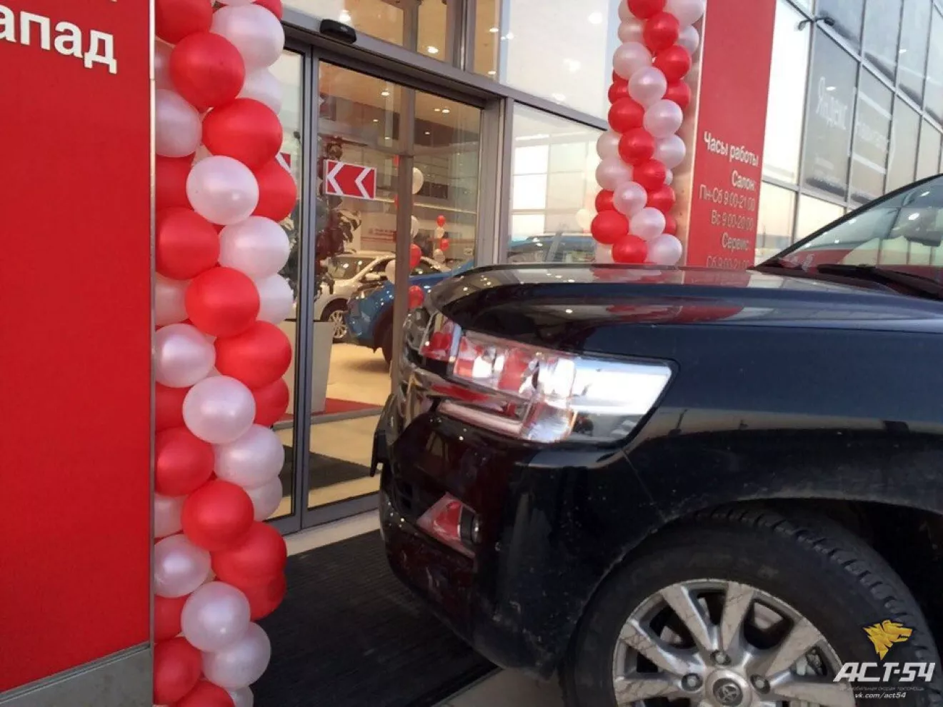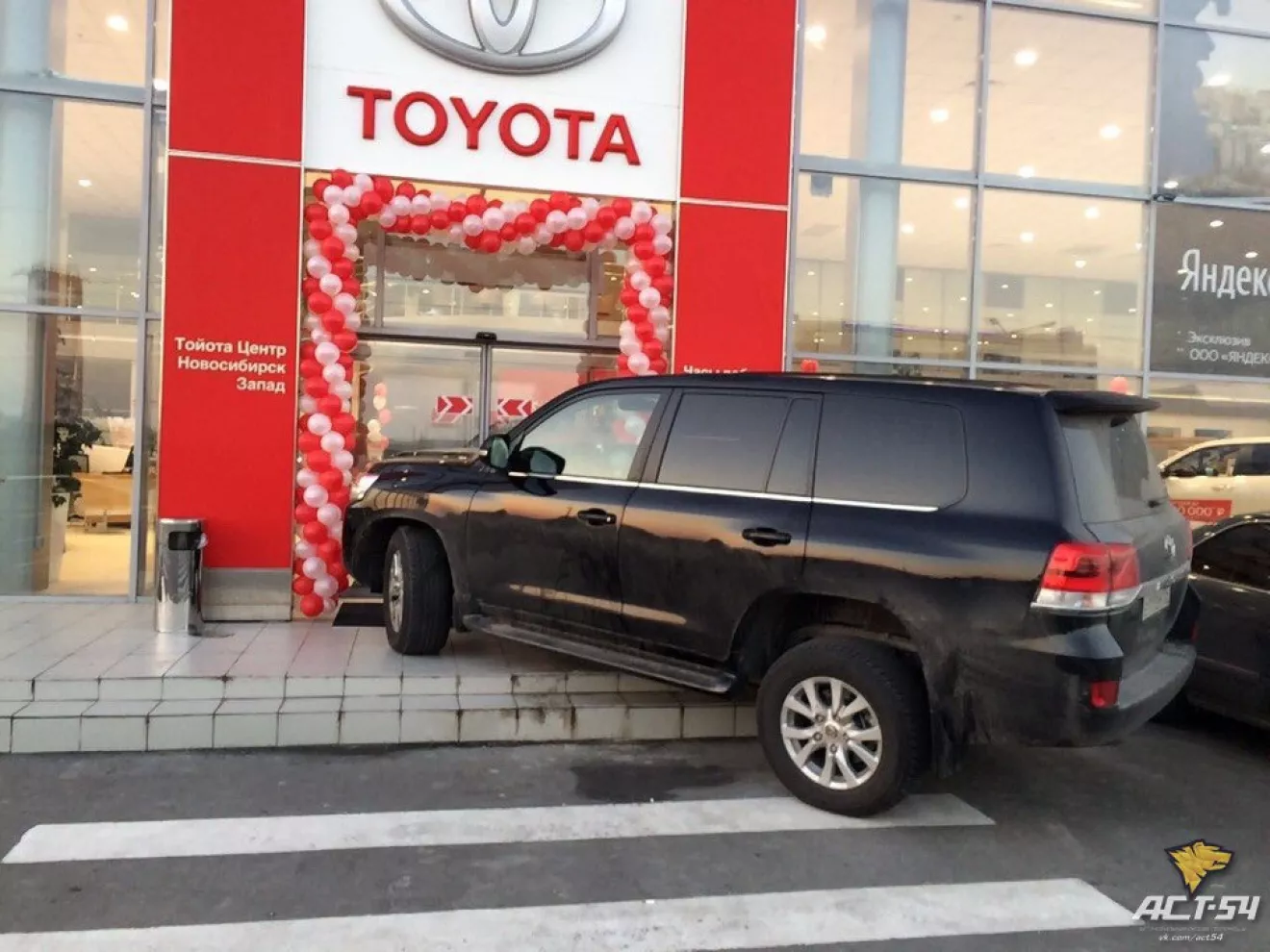 В Новосибирске владелец Ленд Крузера припарковал машину на крыльце автосалона в знак протеста .