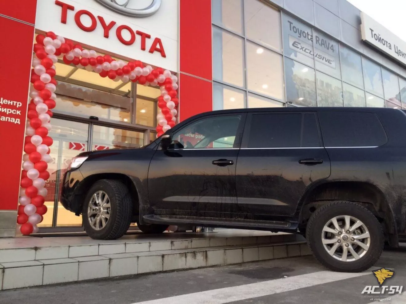 Молодой человек, недовольный качеством сервиса в официальном центре Toyota, припарковал свой внедорожник Toyota Land Cruiser 200 на крыльце автосалона.
