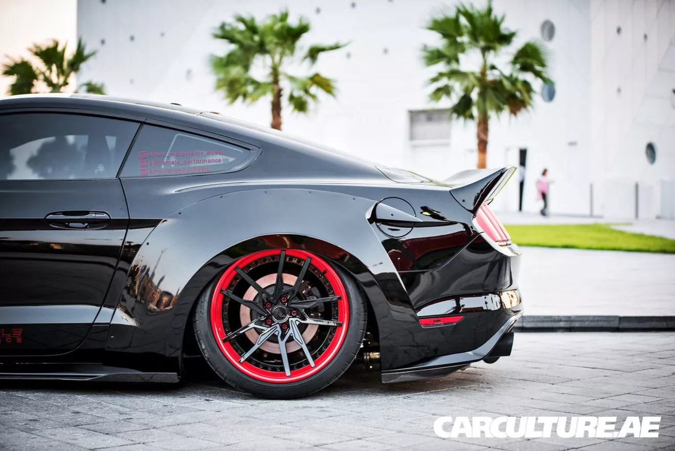 ▪Мустанг также оснастили кованными 3-секционными 20-дюймовыми колесами AMP-5V агрессивного дизайна. Спицы колес и внутренняя часть обода покрашена в черный глянцевый цвет, а большая часть обода получила леденечный красный оттенок с болтами, креплениями и тормозными суппортами черного матового цвета. Колеса «обули» в резину Michelin Pilot Sports, надежно удерживающую автомобиль на дороге.