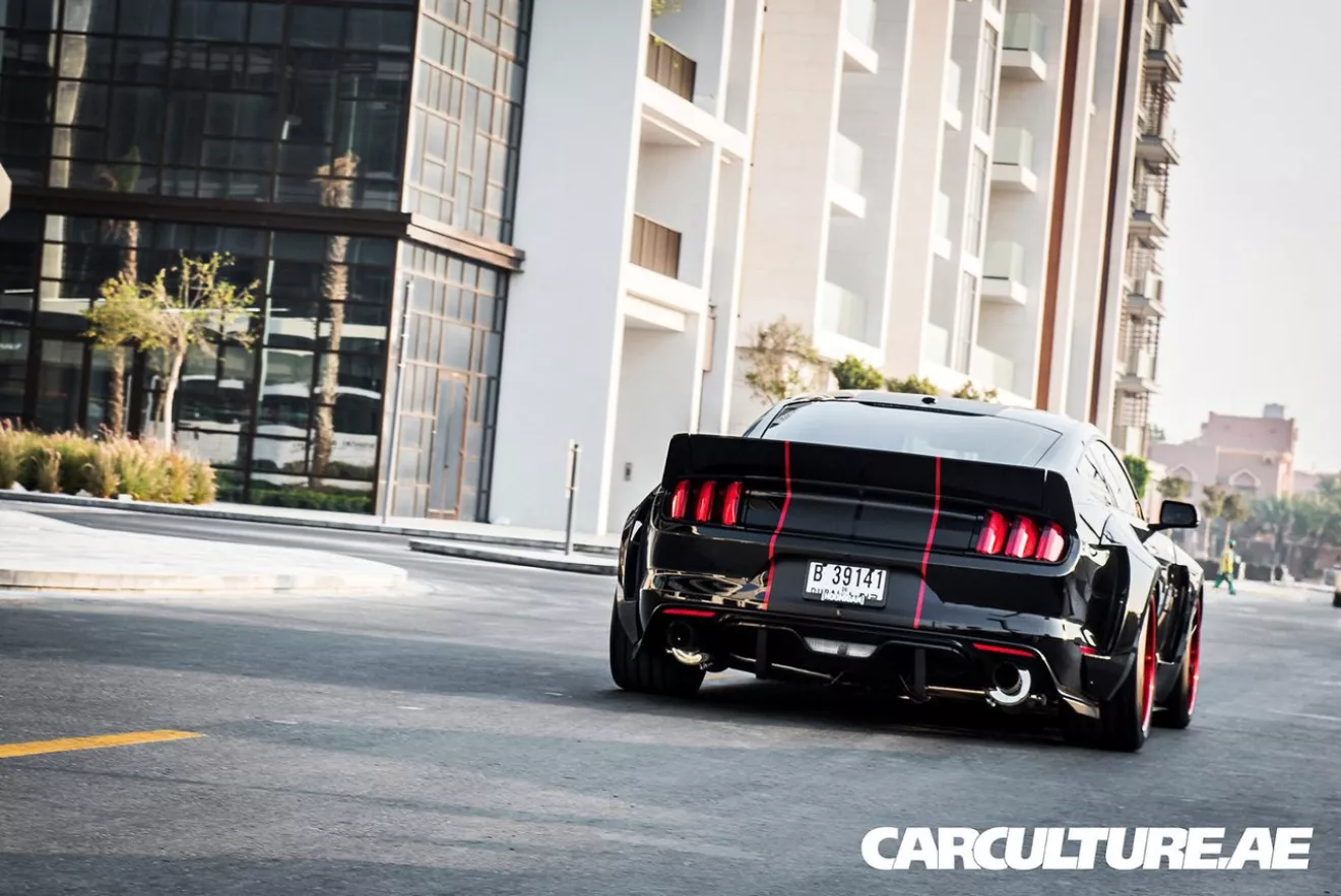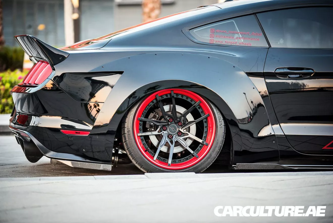 ▪Первым делом стоковый Mustang GT оснастили пакетом Performance и креслами Recaro, а также ширококузовной обвес Alpha One S550 от Alphamale Perfomance. Комплект включает 21 компонент, включая карбоновый передний сплиттер, воздухозаборник капота, карбоновые завихрители, карбоновые боковые юбки, 3-секционный задний спойлер, карбоновый задний диффузор и фирменные расширители колесных арок.