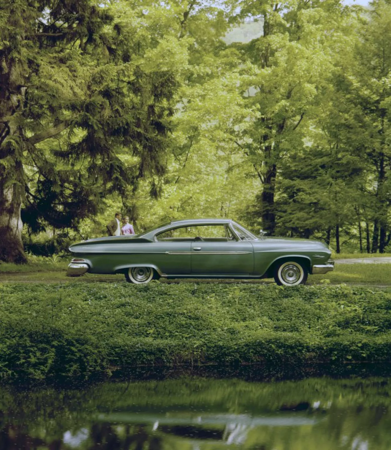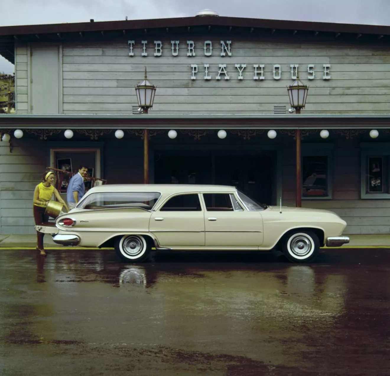 В общем, самая обычная американская повозка люкс-класса тех лет. Дизайн шикарный и нестандартный. Это последние года, когда в Америке был популярен плавниковый стиль, и производители извращались, как могли. У Кадиллака, например, плавники были огромнейшие, ну а у крайслеровских изделий — толстые и нестандартно направленные. Морда, конечно, слегка грустно выглядит, а вот корма просто шик. Универсалы шли с оформлением задних крыльев и оптики, как в 1960 году. Также обращу внимание на приборку, а именно на спидометр. У нас пробовали повторить подобную конструкцию на 21, но вышло немного не то. Тут же — стеклянная матированная пластина с гравированной шкалой, гравированные деления и цифры прокрашены черным. Днем на просвет видно, ночью пластина подсвечивается в торец светло-голубыми лампами, из-за чего засвечивается полностью, цифры и деления, само собой, не светятся