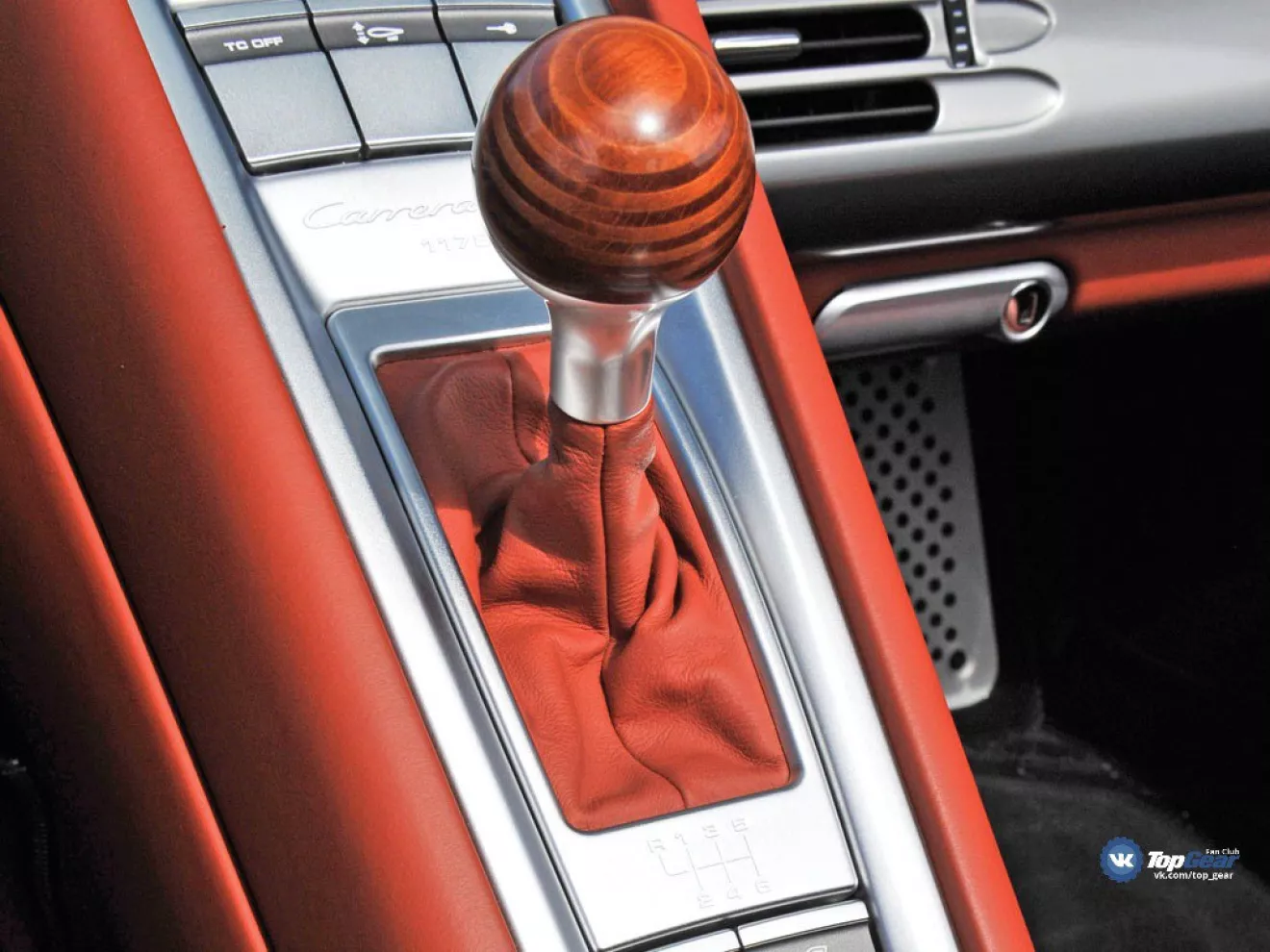 3. Стандартный рычаг КП Carrera GT выполнен из березы и ясеня, чтобы отдать дань уважения рычагу Porsche 917 из пробкового дерева. Древесина легче, чем алюминий, и она не проводит тепло как большинство металлов. Это было особенно важно для пилотов Porsche 917, которым рычаг из обычных материалов обжигал руки. На второй год производства Carrera GT можно было заказать с опциональным рычагом КП из углеволокна.